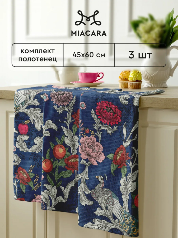 Представляем вашему вниманию набор кухонных полотенец «Mia Cara» из 3 штук в стильном дизайне. Этот комплект станет незаменимым помощником на вашей кухне, сочетая практичность и эстетичный вид. Полотенца изготовлены из высококачественной вафельной ткани, которая отличается прочностью, долговечностью и высокой впитывающей способностью. Они отлично справляются с любыми кухонными задачами: протирание посуды, уборка поверхностей, сушка рук и работа с продуктами. Благодаря красивому дизайну, полотенца могут использоваться не только на кухне, но и как декоративный элемент, создавая атмосферу уюта и оригинальности в вашем доме. Добавьте нотку уюта и стиля на вашу кухню с набором полотенец «Mia Cara» — идеальным сочетанием качества, практичности и дизайна!