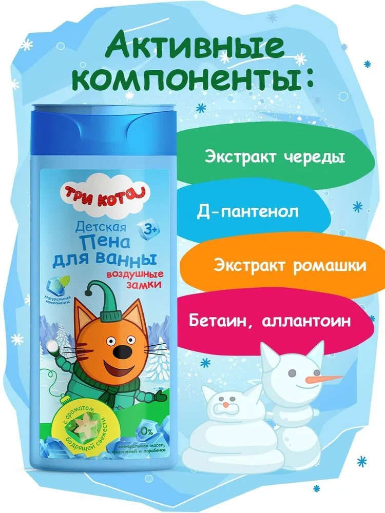 Галант Косметик Пена для ванны детская «Воздушные замки»В данный момент этот товар отсутствует в продаже. Возможно, у нас найдется аналогичный или похожий товар здесь. Серия: Три кота Купание с пеной для ванн Три кота станет интересным и увлекательным для вашего ребенка. Густая, обильная пена с множеством пузырьков послужит отличным материалом для возведения в ванной воздушных замков, крепостей или для создания оригинальных головных уборов на голове у крохи. Благодаря мягким ПАВам, пена очищает кожу, сохраняя оптимальный водный баланс. Экстракты череды и ромашки смягчают и успокаивают кожу, а Д-пантенол способствует ее восстановлению. |