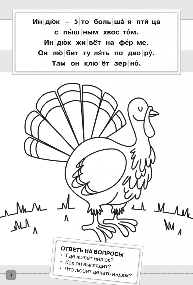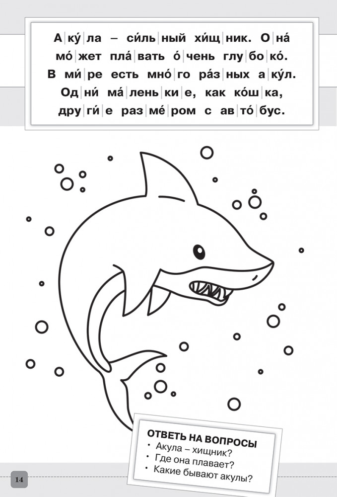 Раскраска-читалка. Читаем по слогам. 1 уровень. Тексты до 30 слов