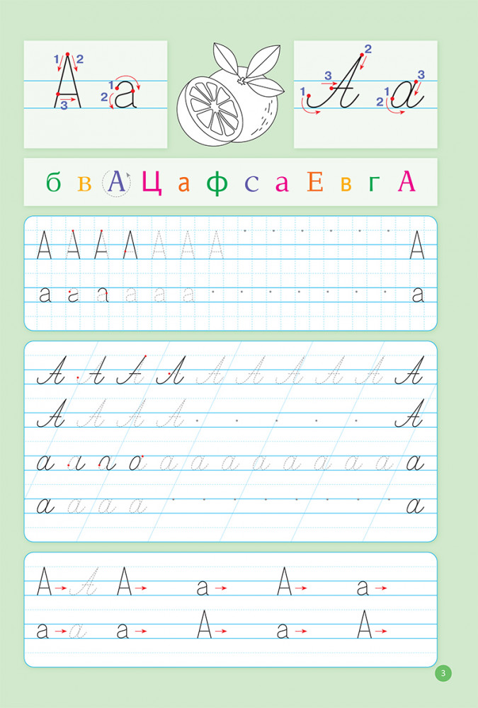 Во время обучения важно обращать внимание на последовательность написания букв, так как у каждой есть свой определённый алгоритм. Правильное формирование навыков письма с самого начала поможет избежать ошибок, которые могут потребовать переучивания в дальнейшем. Главная цель пособия — помочь ребёнку запомнить, как пишутся письменные буквы, а не стремиться к идеальной каллиграфии.