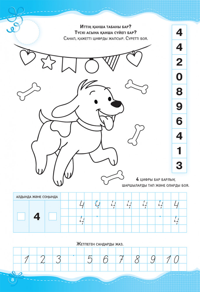 Аңдармен бірге санаймыз. Цифрларды жазамыз. Санау, зейін, логикалық ойлауВ данный момент этот товар отсутствует в продаже. Возможно, у нас найдется аналогичный или похожий товар здесь. Ұсынылып отырған оқу құралы 5 жастан асқан балаларды бояу арқылы жазуға үйретеді. Құралдағы тапсырмаларды орындай отырып, бала цифрлар мен сандардың графикалық бейнеленуімен танысады және санаудың алгоритмін меңгереді. |