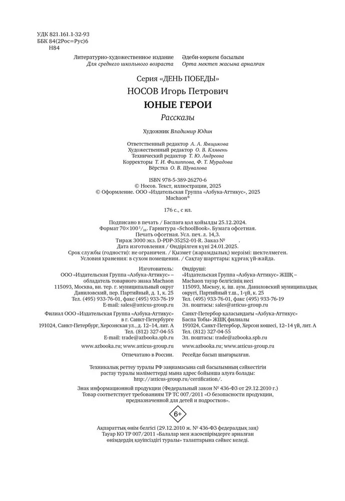 💳 Оплатить за товар можно при получении 🇰🇿 Есть бесплатная доставка по Казахстану от 1 дня 🎁 Копите бонусы с каждой покупки Серия: День Победы «Юные герои» — сборник рассказов Игоря Носова о тяжёлом времени военных лет. Герои этих рассказов — совсем юные мальчики и девочки, детство которых оборвала Великая Отечественная война. Школу им заменили партизанские отряды, а беззаботные игры во дворах превратились в жестокие столкновения с врагом. Несмотря на возраст, они с непоколебимой решительностью сражались за Родину. Марат Казей, Володя Дубинин, Зина Портнова и многие другие заслужили звание героев и нашу бесконечную благодарность и уважение за смелость и отвагу! |