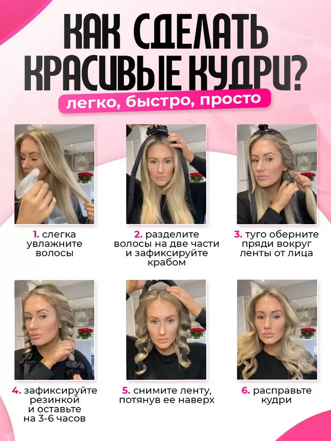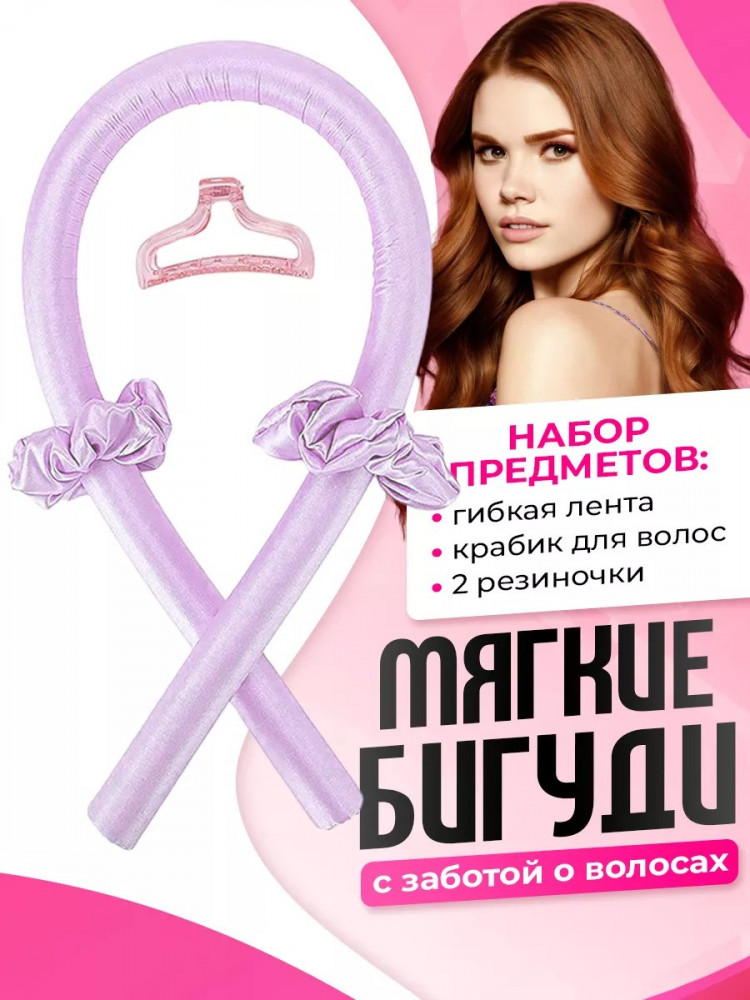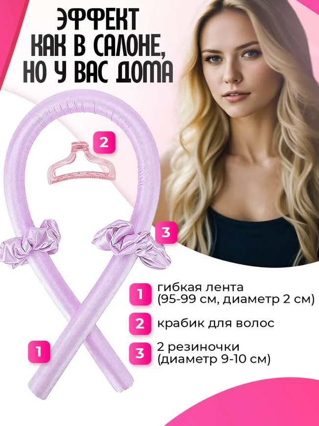 Бигуди для завивки кудрей являются модным современным трендом в индустрии красоты. Лента для волос выполнена из мягкого поролона и гладкой атласной ткани. Благодаря этому длинные волосы не травмируются во время завивки и сна, в отличие от использования плоек. Набор для укладки состоит из гибкой монобигуди, двух шелковых резинок и крабика. Валик подходит и для средней длины. Пряди следует накрутить по спирали вокруг бигуди и зафиксировать резиночками и зажимом сверху. Предварительно рекомендуется увлажнить волосы или нанести фиксатор для укладки. Как результат — шикарные крупные кудри и естественная волна. Ночные большие бигуди ободок — абсолютно безопасный аксессуар, который отличается отсутствием травматизации и легкостью в применении. Незаменимый атрибут для создания объемной прически на каждый день в домашних условиях. Степень закрученности завитков можно регулировать путем более плотного или свободного наматывания локона вокруг бигуди.