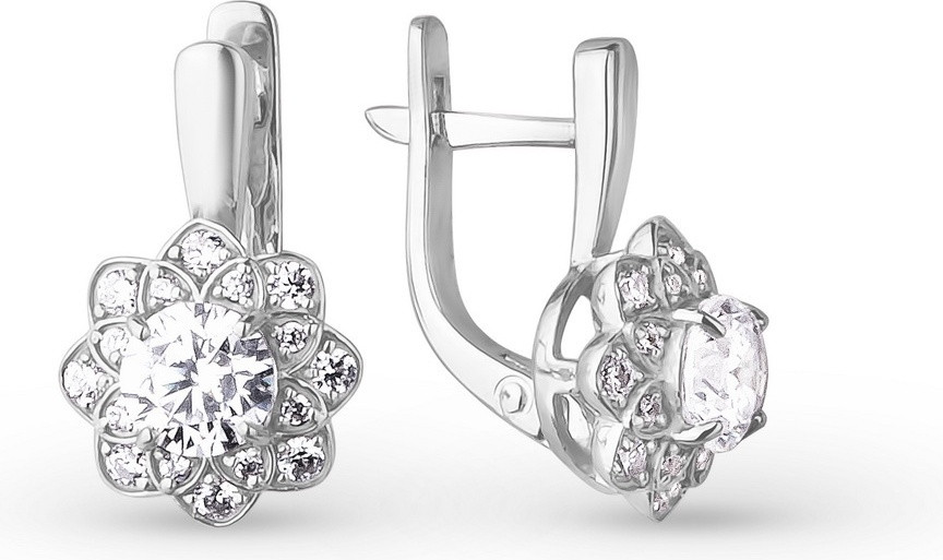 Костромской ювелирный завод Серьги из серебра с фианитом