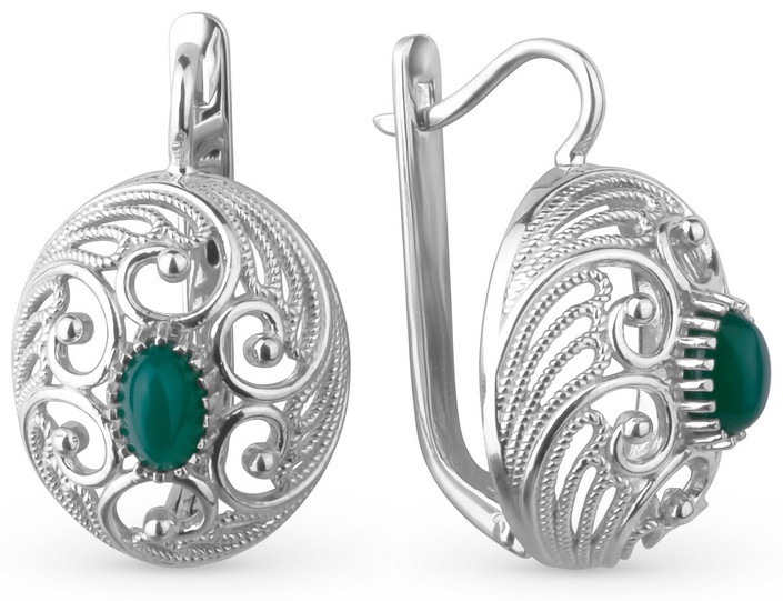Костромской ювелирный завод Серьги из серебра с хризопразом
