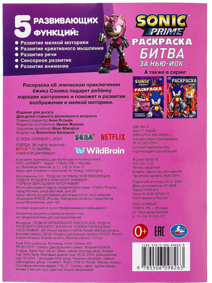 УМка Раскраска «Соник. Битва за Нью-Йорк»-30% +15
