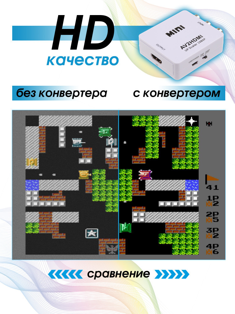Эта версия приставки комплектуется HDMI-конвертером, который позволяет подключать устройство к современным телевизорам и улучшает качество изображения. Начните восхождение к вершинам игрового мира с ретроприставкой Dendy Drive!