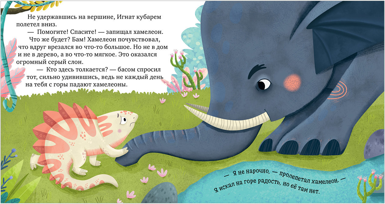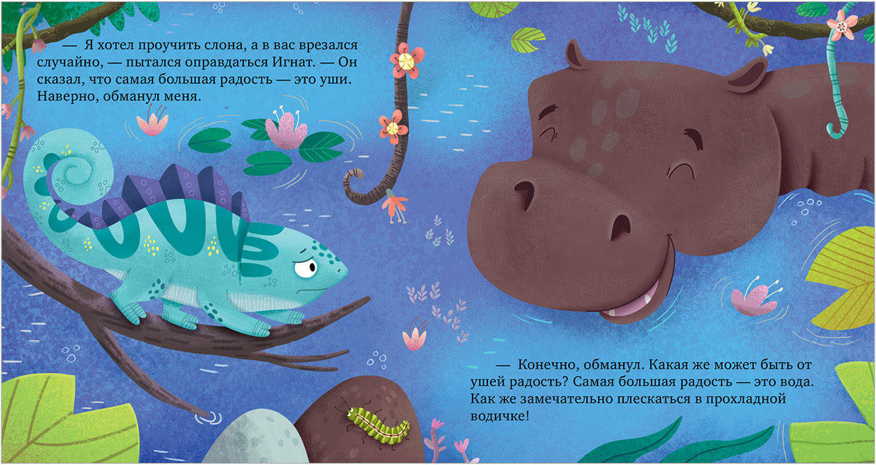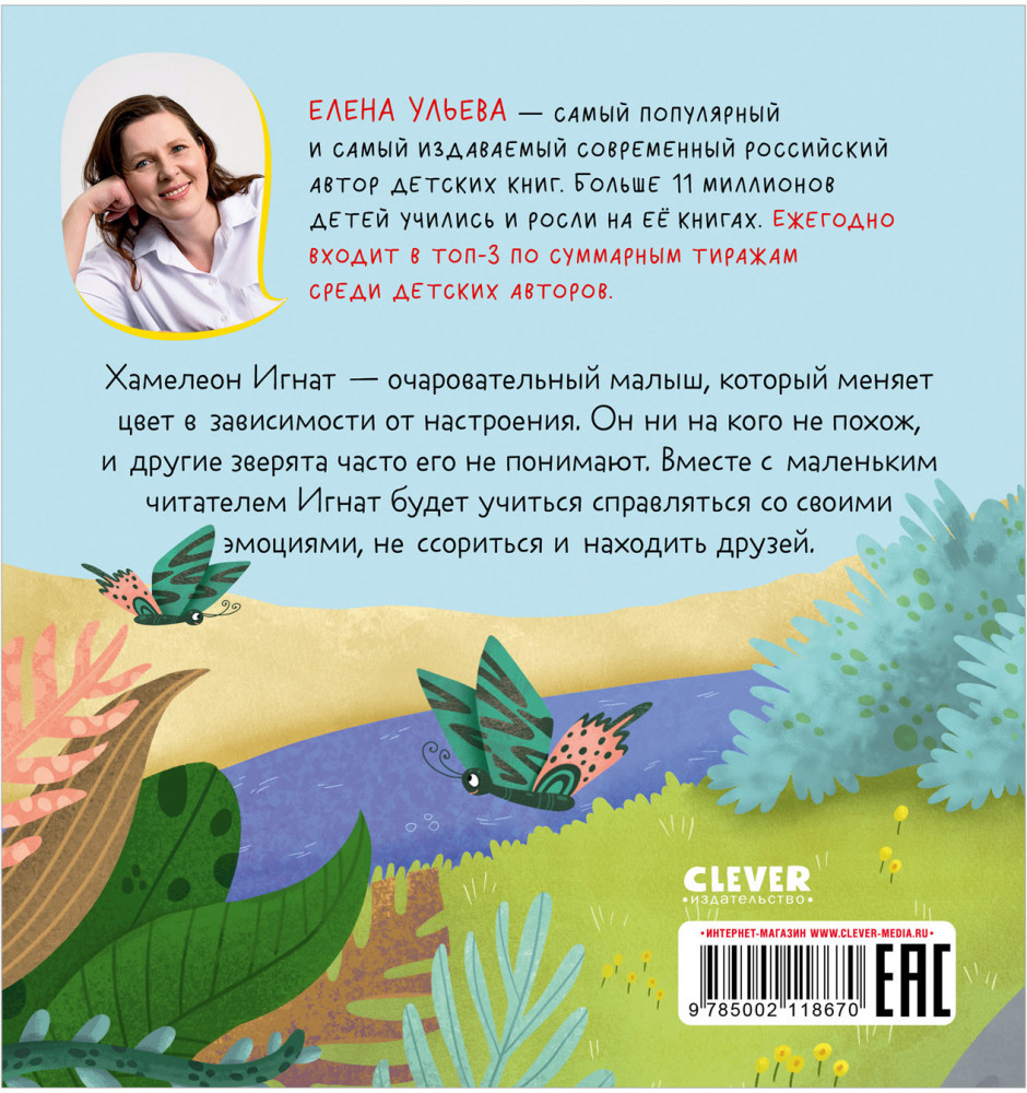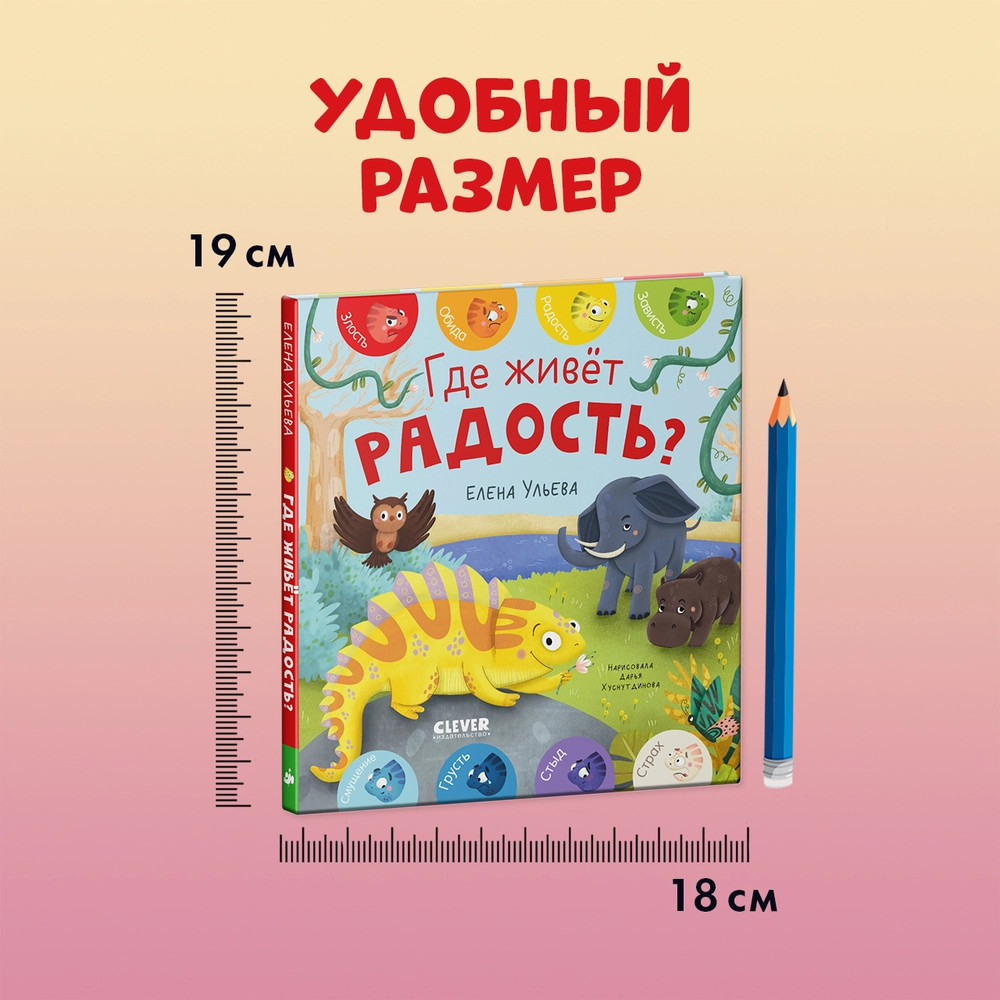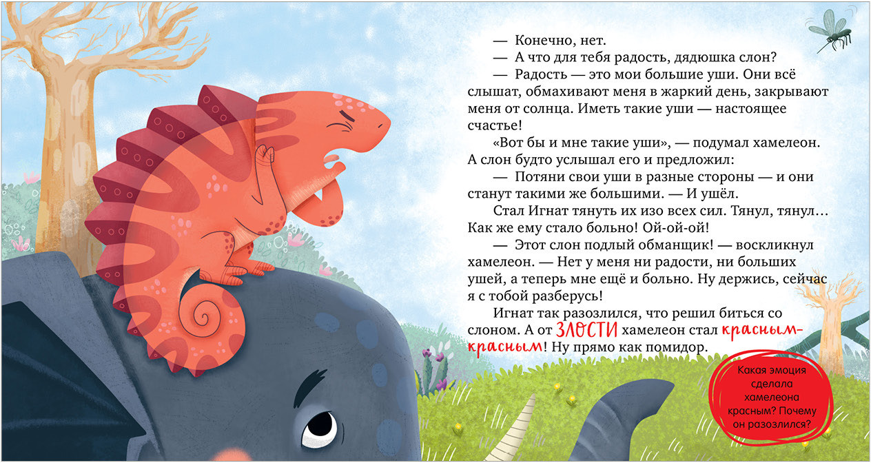 В данный момент этот товар отсутствует в продаже. Возможно, у нас найдется аналогичный или похожий товар здесь. Серия: Дружим с эмоциями Хамелеон Игнат меняет цвет в зависимости от настроения. Он ни на кого не похож, и другие зверята часто его не понимают. Например, у каждого обитателя леса есть повод для радости: попугай научился летать, у слона самые большие уши, бегемот обожает плавать… А Игнат? Где потерялась радость маленького хамелеона?