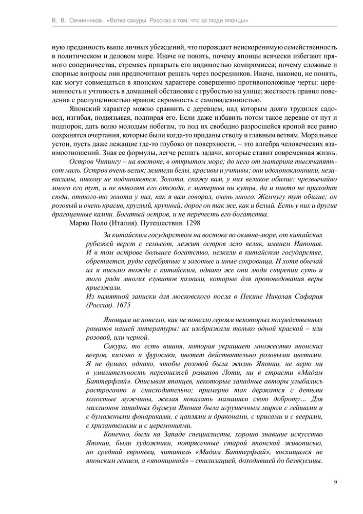 Сакура и дуб. Ветка сакуры; Корни дубаВсеволод Владимирович Овчинников В данный момент этот товар отсутствует в продаже. Возможно, у нас найдется аналогичный или похожий товар здесь. Серия: Овчинников. Впечатления и размышления о... Всеволод Владимирович Овчинников — журналист-международник, писатель, много лет проработавший в Китае, Японии, Англии. С его именем связано новое направление в отечественной журналистике — создание психологического портрета зарубежного общества. Творческое кредо автора: «Убедить читателя, что нельзя мерить чужую жизнь на свой аршин, нельзя опираться на привычную систему ценностей и критериев, ибо они отнюдь не универсальны, как и грамматические нормы нашего родного языка». В 1985 году за эти произведения автор был удостоен Государственной премии СССР. В 2010 году Президент РФ Дмитрий Медведев вручил Всеволоду Овчинникову орден «За заслуги перед Отечеством» четвертой степени. |