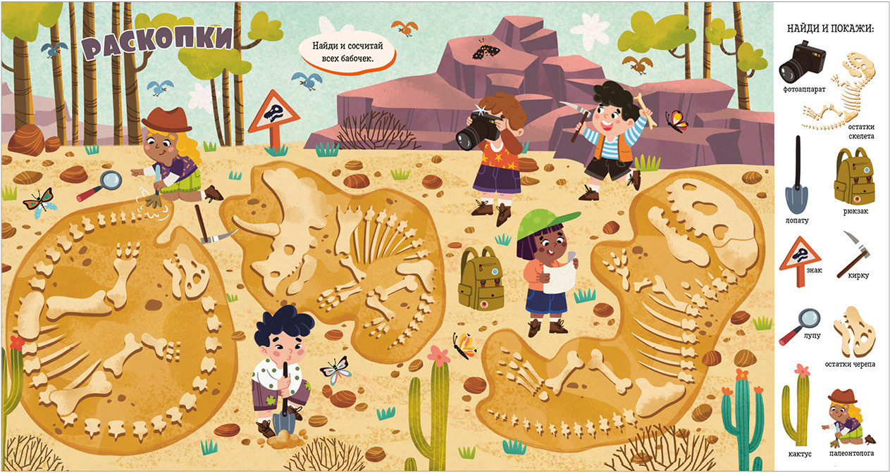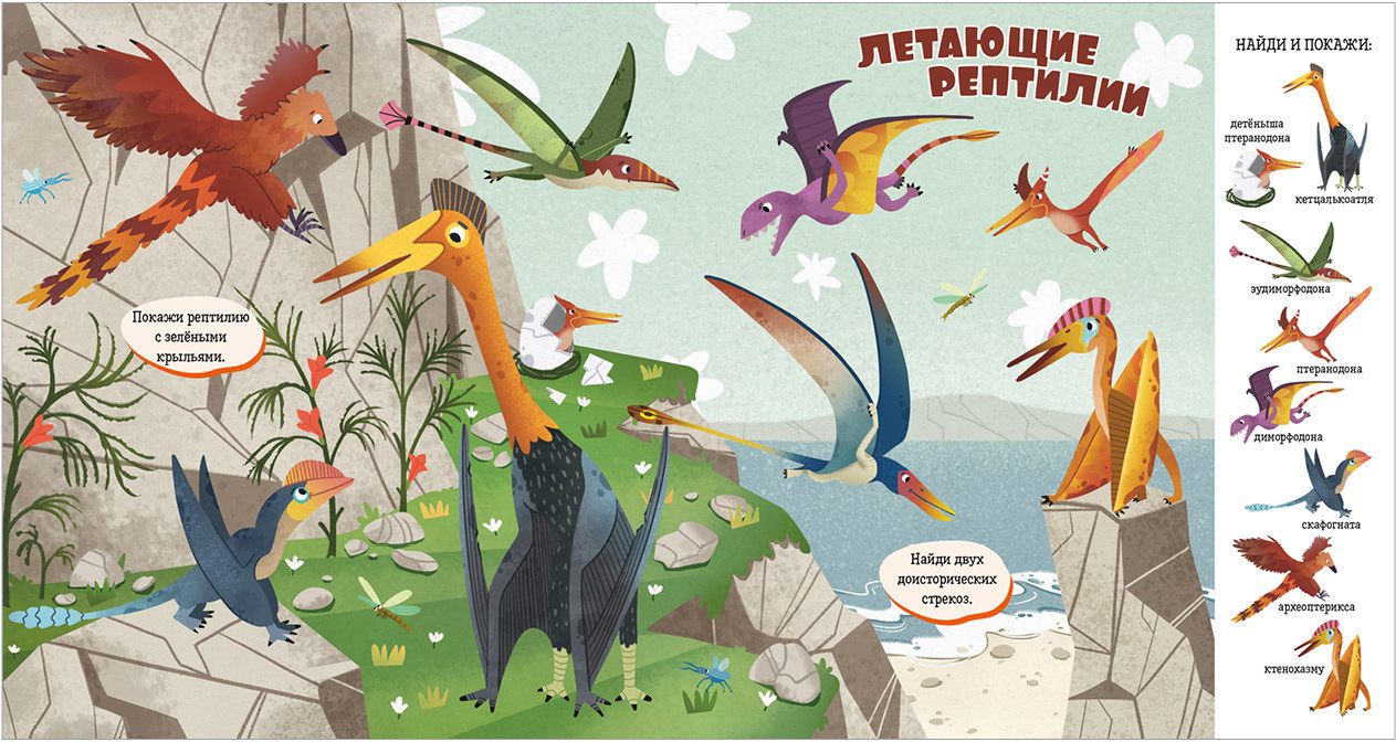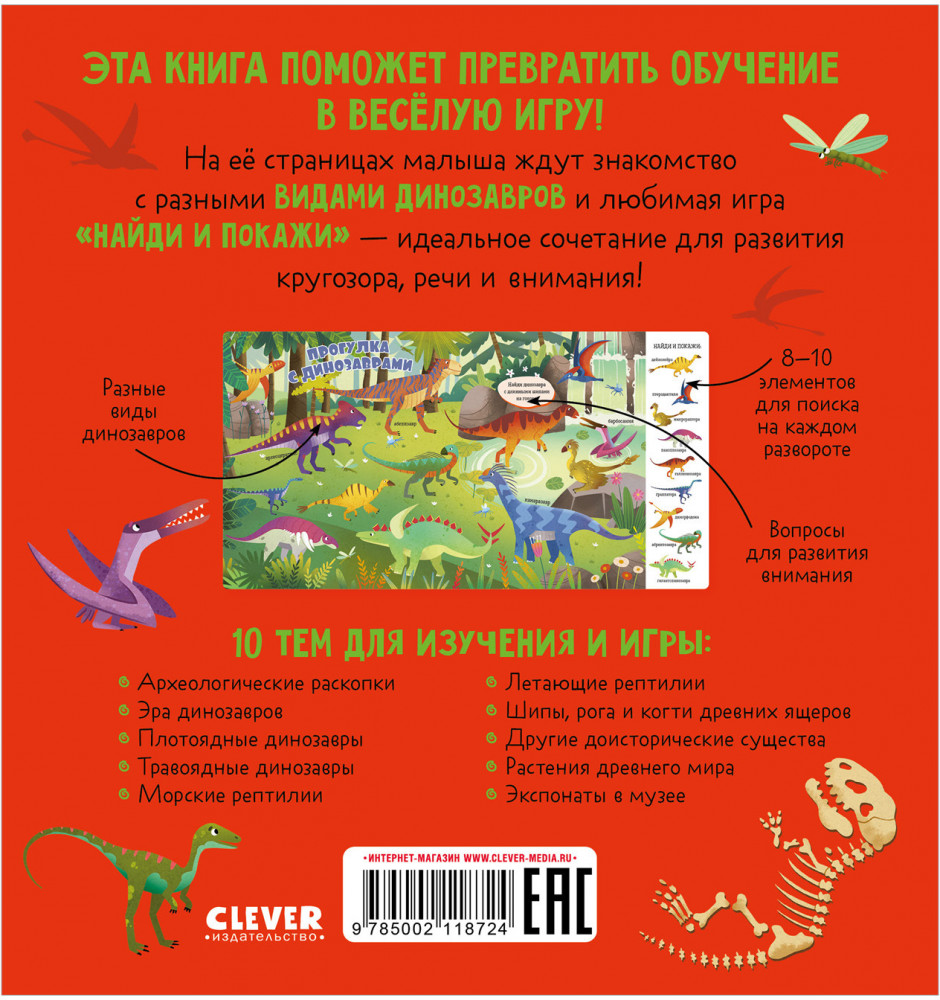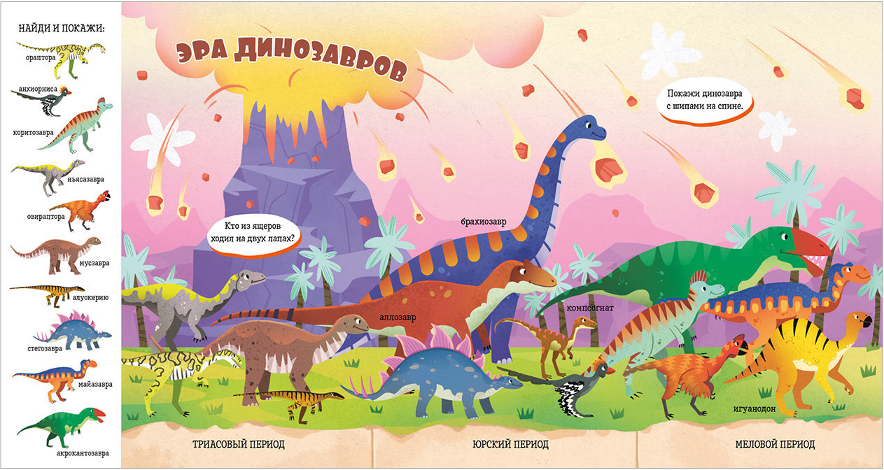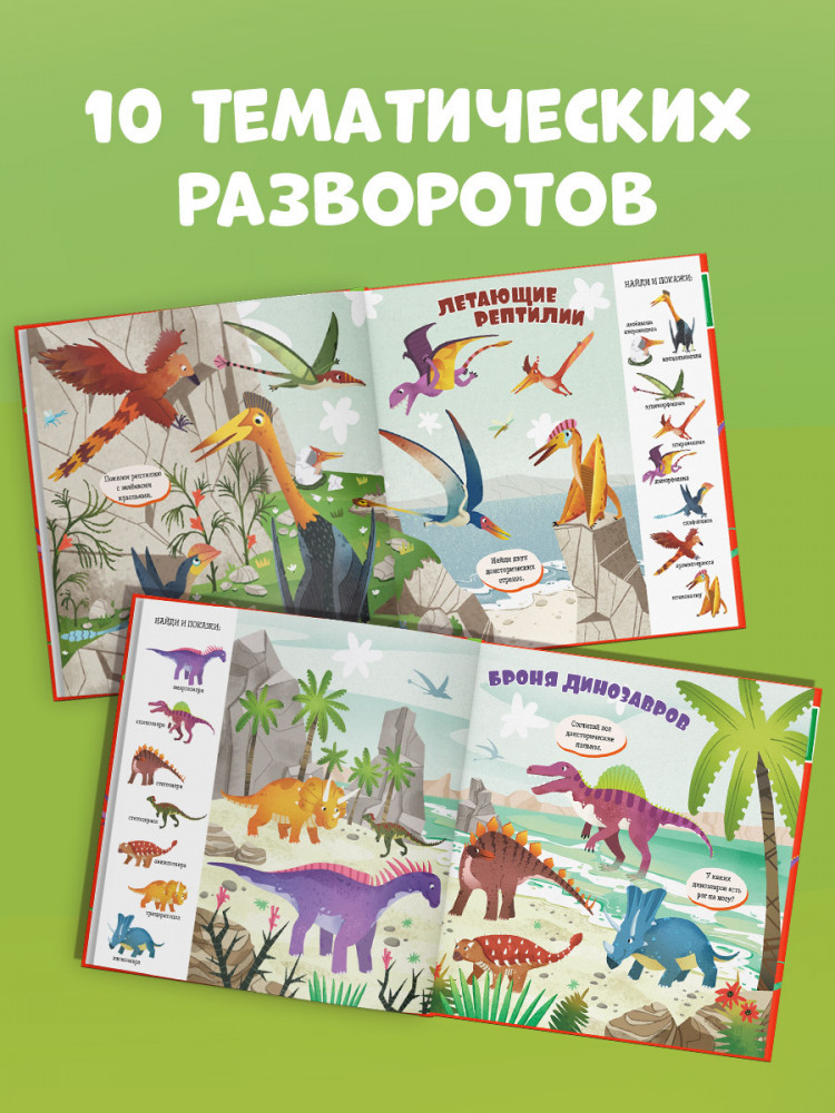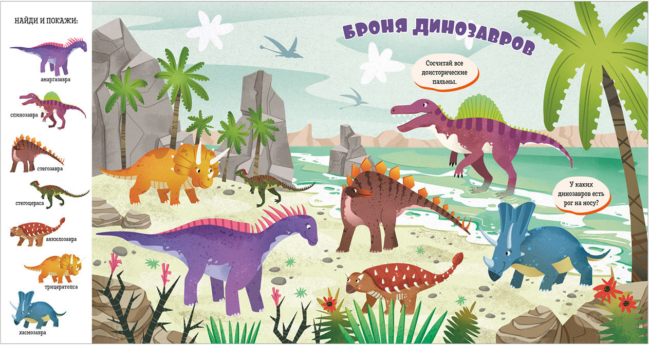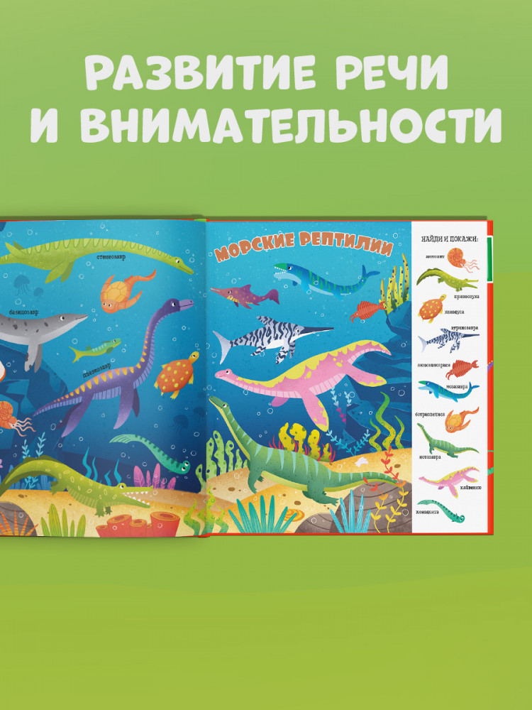 Книга «Динозавры» входит в популярную серию «Найди и покажи, малыш». Панорамные развороты с забавными иллюстрациями, большое количество предметов для поиска, развитие речи, внимательности и расширение кругозора — за всё это книги «Найди и покажи» любят и дети, и родители. |