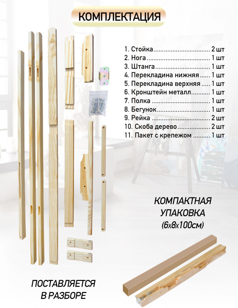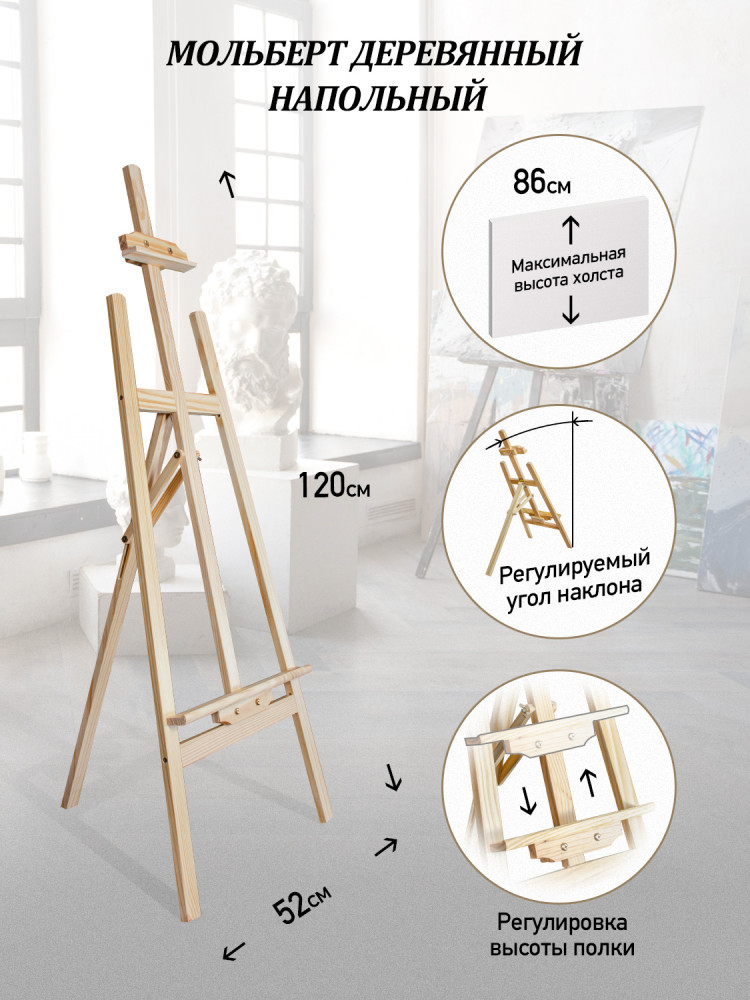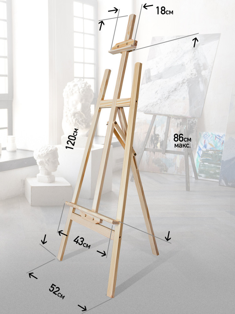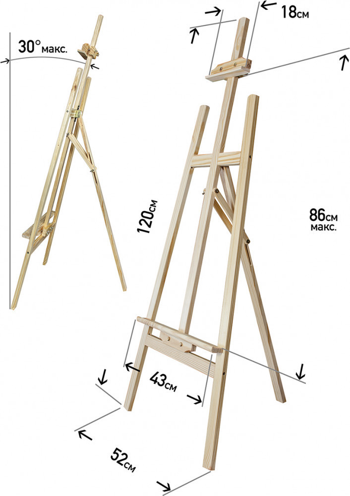 💳 Оплатить за товар можно при получении 🇰🇿 Есть бесплатная доставка по Казахстану от 1 дня 🎁 Копите бонусы с каждой покупки Мольберт разборный с выдвижной мачтой, регулировкой по высоте и углу наклона. Холст на подрамнике размещается на полке-держателе, закрепленную на нижнем конце мачты, и зажимается сверху при помощи подвижного зажима холста-бегунка. Бегунок свободно перемещается по мачте и фиксируется с помощью винта с гайкой типа «барашек». Напольный мольберт с углом наклона до 30 градусов для работ не более 86 см по высоте (30×40, 40×50, 50×60, 60×80 в горизонтальной и вертикальной ориентации). |
