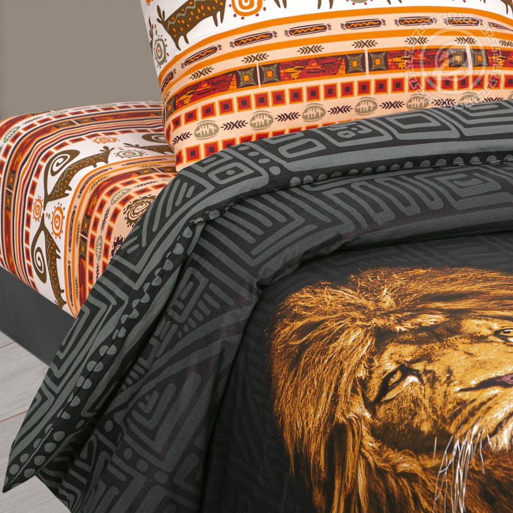 Если вы хотите оформить интерьер в африканском стиле, то «Львиное сердце» — идеальный выбор. Композиция колоритная и экзотическая. В ней чудесно сочетаются традиционные орнаменты и изображения животных. Львы — главные элементы необычного рисунка. Их облик окутан тайной и несет ощущение силы, страсти и энергии. Это невероятно эффектный принт в натуральных оттенках, который станет важным акцентом комнаты. Постельный комплект поплин «Львиное сердце» подарит яркие сны!