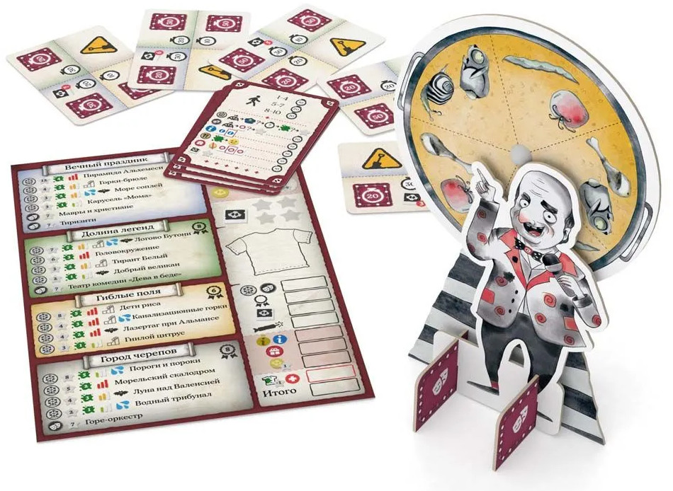 💳 Оплатить за товар можно при получении 🇰🇿 Есть бесплатная доставка по Казахстану от 1 дня 🎁 Копите бонусы с каждой покупки Добро пожаловать в парк «Паэлья», самый известный парк развлечений во всей Валенсии! Прокатитесь на колесе обозрения в форме сковородки с паэльей, попытайтесь сфотографироваться с неуловимой Королевой зомби и обязательно заскочите на пару представлений. «Парк Паэлья» — это одна из первых игр, посвящённых парку развлечений, в которой игрокам предстоит не управлять парком, а наслаждаться его посещением! Эта увлекательная стратегическая игра для 2-5 игроков предлагает необычный подход к игровому процессу, и она уже высоко оценена на сайте BGG: её текущая оценка — 8,2 балла. Автор игры — талантливый Эстер Мендез — известен по своей работе над «Семейкой Хорт». В игре присутствуют два уровня сложности: стандартный режим, а также упрощённый и более быстрый вариант для игры с детьми. |