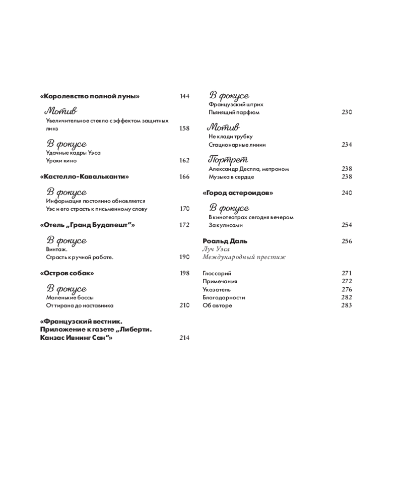 Книга напечатана на плотной мелованной бумаге, что позволяет передать всю палитру фильмов режиссера. Кроме прочего, ее будет приятно держать в руках благодаря нежной обложке soft-touch. Также как и Уэс, мы были внимательны к деталям и для удобства чтения добавили ленту-ляссе (цвета сладкой розовой ваты). Позвольте себе роскошь полного погружения во вселенную Уэса Андерсона! |