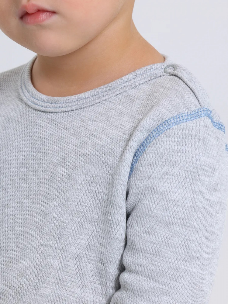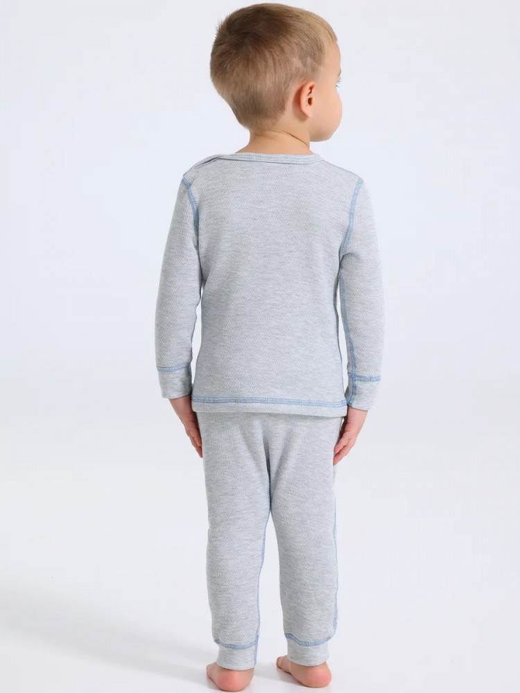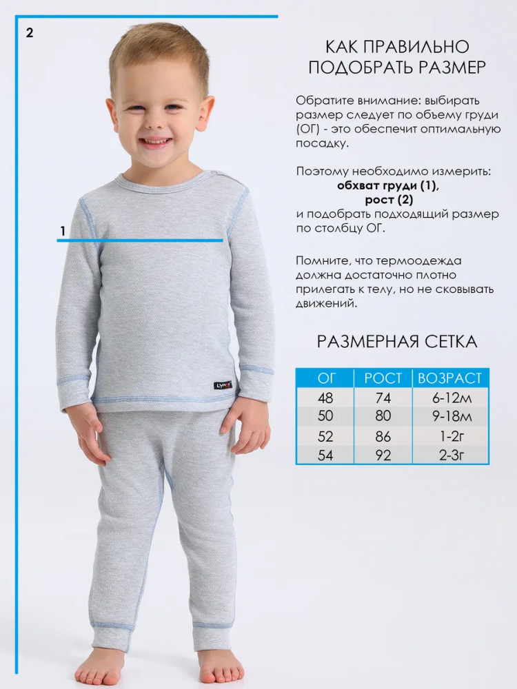 Детский спортивный термокомплект коллекции Soft из теплого термополотна с хлопком premium качества. Зимний утепленный костюм подходит для всех режимов активности в холодное время года до -30°C. Термополотно с мягким начесом прекрасно сохраняет тепло, ворс создает прослойку воздуха, обеспечивающую комфортный микроклимат. Материал прочный и износостойкий, отводит влагу, позволяет коже дышать. Комбинированное термополотно не деформируется при физических нагрузках, благодаря хорошим терморегулирующим свойствам теплый комплект идеален для долгих прогулок, тюбинга, футбола и зимних видов спорта. Удлиненный лонгслив с застежкой на кнопки на плечике надежно прикрывает поясницу, удобные термоштаны специального кроя под подгузник создают комфорт в движении, эластичные манжеты держат тепло, плоские швы обеспечивают комфортное прилегание, модель унисекс — без гульфика. Рекомендуем в качестве облегающего первого слоя: нежное термополотно не колется, подходит для повседневной носки.