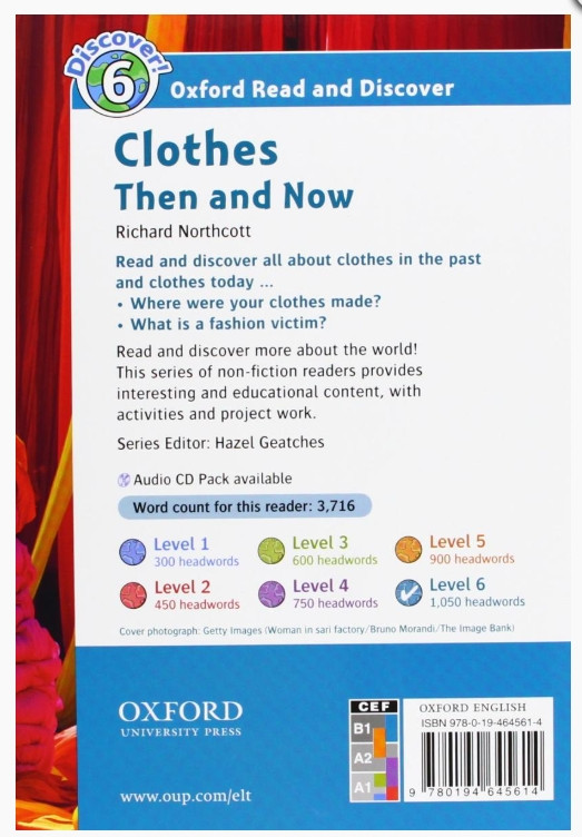 💳 Оплатить за товар можно при получении 🇰🇿 Есть бесплатная доставка по Казахстану от 1 дня 🎁 Копите бонусы с каждой покупки Прочитай и узнай всё об одежде в прошлом и сейчас. Из чего была сделана твоя одежда? Что такое «жертва моды»? Познавательная серия адаптированных книг для чтения Oxford Read & Discover с дополнительными заданиями и интересными проектами для юных исследователей разработана специально для того, чтобы читатели с любым уровнем английского могли погрузиться в мир «открытий чудных» и научных фактов. Содержание серии разработано в соответствии с предметно-языковой интегрированной методикой CLIL (Content and Language Integrated Learning). |