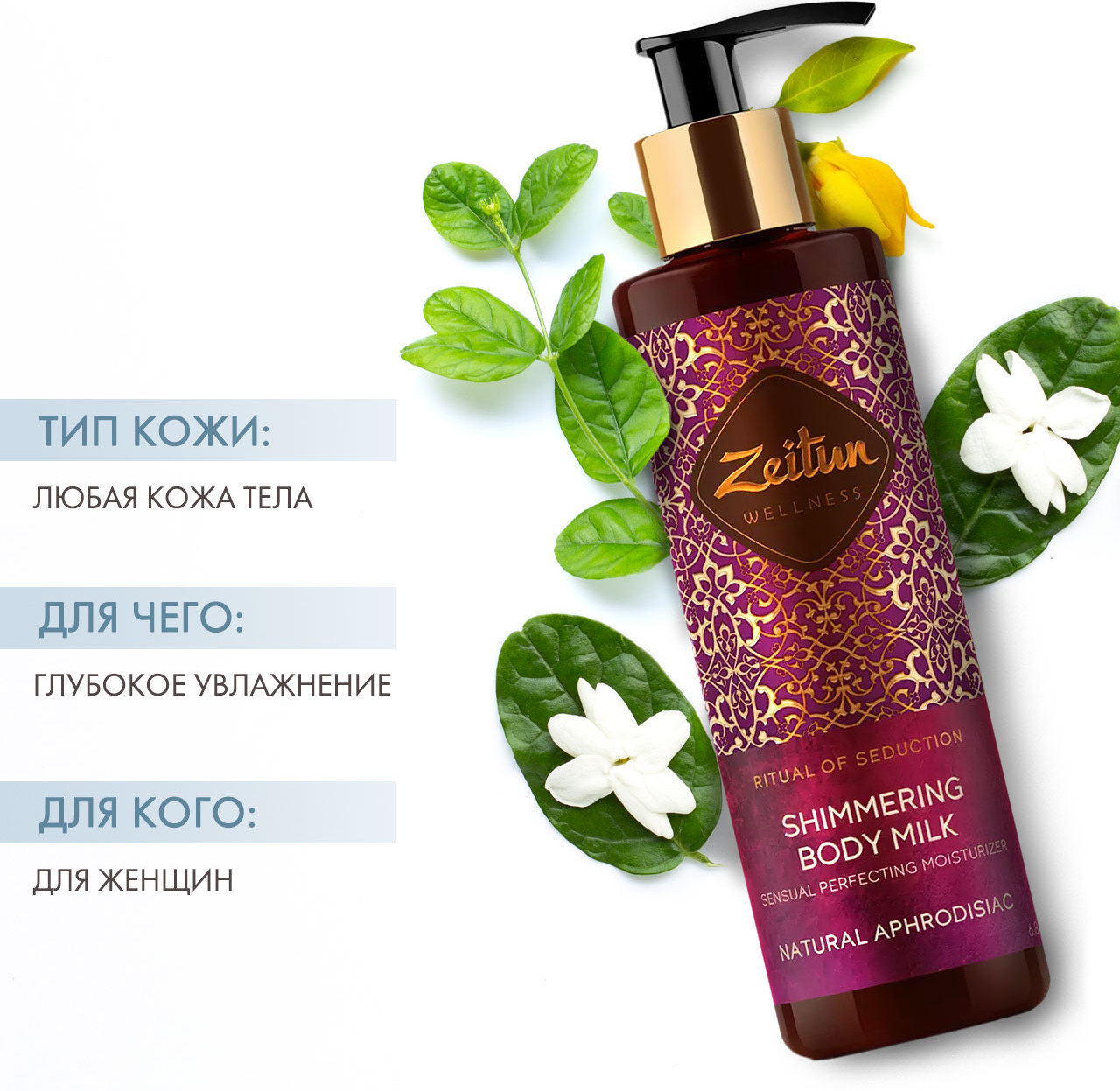 Zeitun Молочко для тела сияющее с жасмином и натуральным афродизиаком «Ritual of Seduction. Ритуал соблазна»