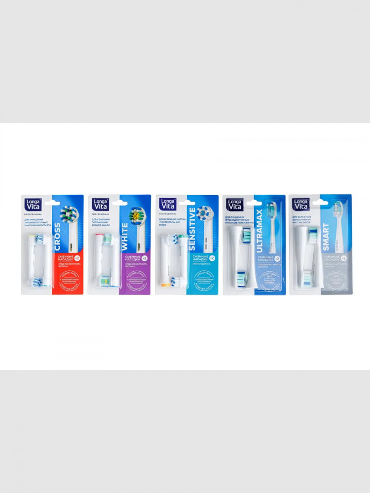 Longa Vita Набор насадок сменных средней жесткости для электрической зубной щетки KAB-4 «Cross»В данный момент этот товар отсутствует в продаже. Возможно, у нас найдется аналогичный или похожий товар здесь. Сменные насадки для электрической зубной щётки KAB-4, щетина средняя. Насадки с перекрестными щетинками предназначены для ежедневного ухода за полостью рта. Расположение щетинок под углом позволяет глубже проникать в промежутки между зубами, эффективнее удалять налет и зубной камень вдоль линии десен. Высококачественная щетина и эргономичная головка позволяют деликатно очищать поверхность зубов, не травмируя десны.  |