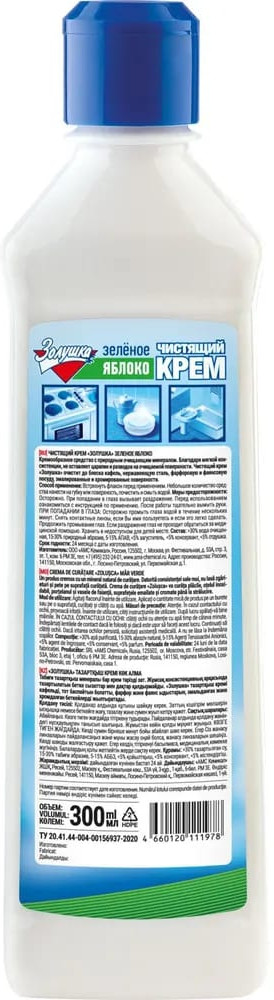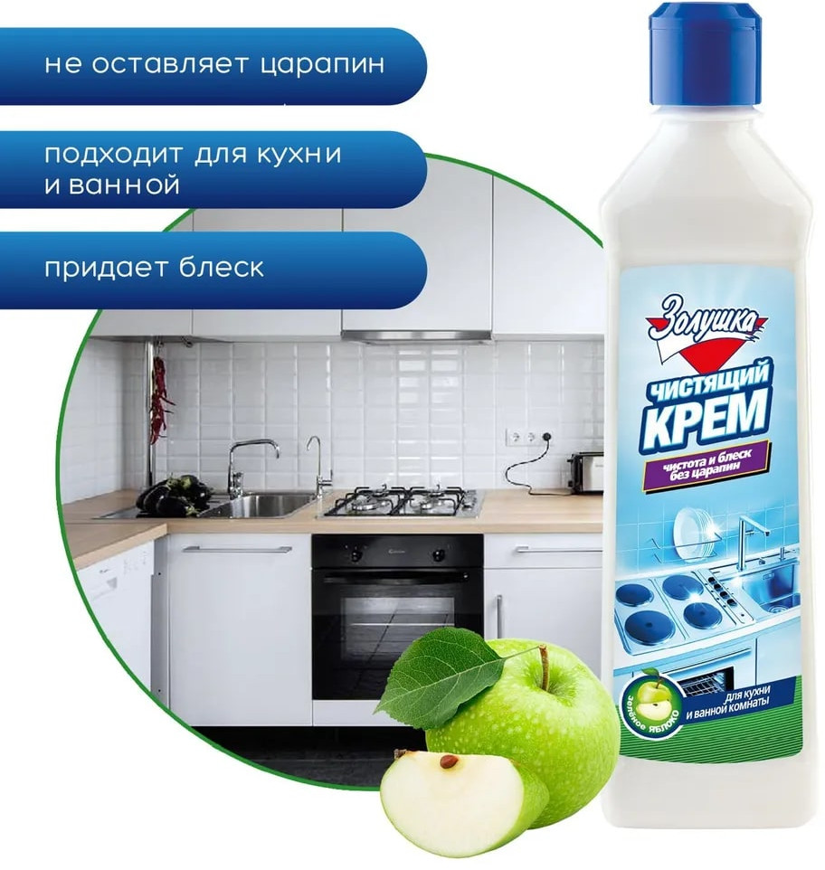 Золушка Крем чистящий для кухни и ванной комнаты «Зеленое яблоко»