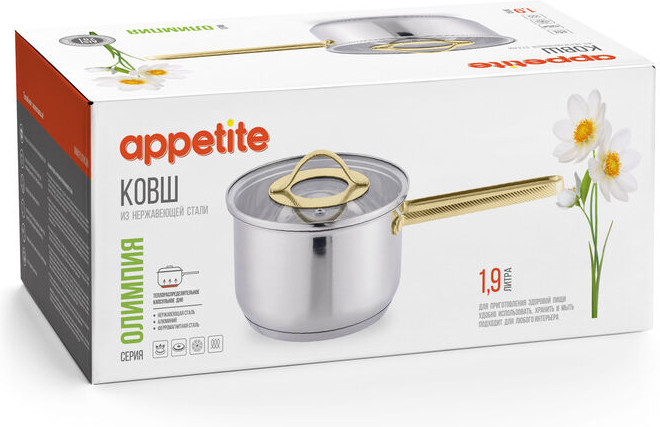 💳 Оплатить за товар можно при получении 🇰🇿 Есть бесплатная доставка по Казахстану от 1 дня 🎁 Копите бонусы с каждой покупки Серия: Олимпия Нержавеющий ковш серии Олимпия изготовлен из высококачественной пищевой нержавеющей стали. Идеальное соотношение толщины стенок и дна обеспечивает равномерное и быстрое нагревание, при этом приготовленная пища в таком ковше остывать будет медленно, так как он надолго удерживает тепло. Оригинальный запатентованный дизайн ручки обеспечивает не только удобство в использовании, но и привлекательный внешний вид ковша. Посуда подходит для использования на всех типах плит, в том числе с варочными стеклокерамическими панелями и индукционными плитами. |