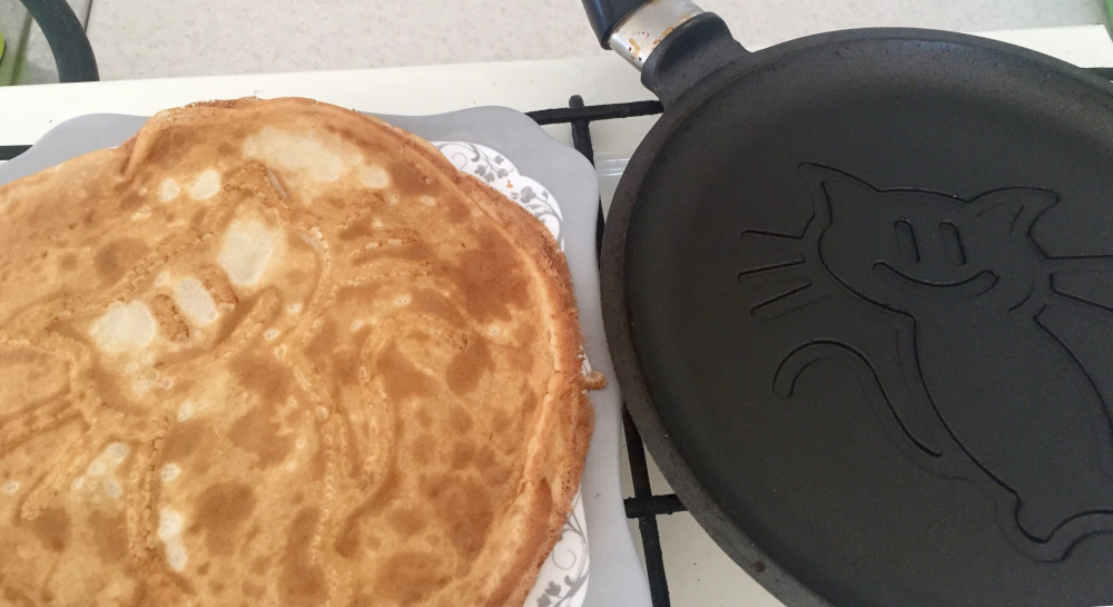 Сковорода - то, что надо !!! В масленицу без дела не простаивает. Пропекает равномерно и быстро. Денег своих стоит. Котики очень милые. Дети в восторге.