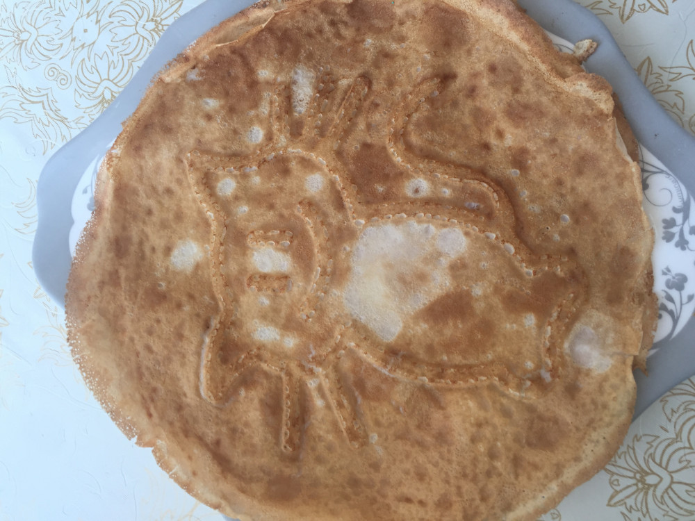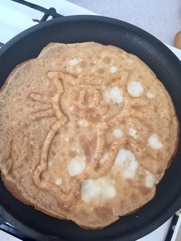 Когда подала на стол горячие блинчики, восторг был неописуемый. Детки говорили, что Блинчики с котенком вкуснее! Блины получаются тоненькие, рисунок не прилипает, отлично переворачивается (каучуковой лопаткой). Качество сковороды на высшем уровне.