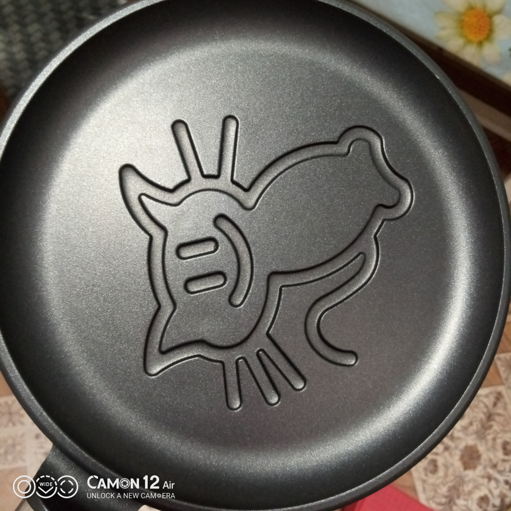 Лучшая сковорода для блинов, из всех что у меня были. Покупала специально для ребенка. Котяра на блинчиках получается забавный, ничего не липнет, силуэт пропекается отлично. Блинчики оригинальные и очень быстро пекутся, сковорода тяжелая и долго остывает, что очень радует. Легкие сковороды выгибаются в процессе использования, а тут, денег не жалко совсем, такую посуду приятно покупать, море положительных эмоций!