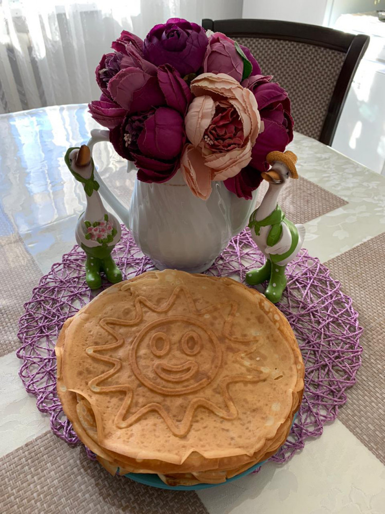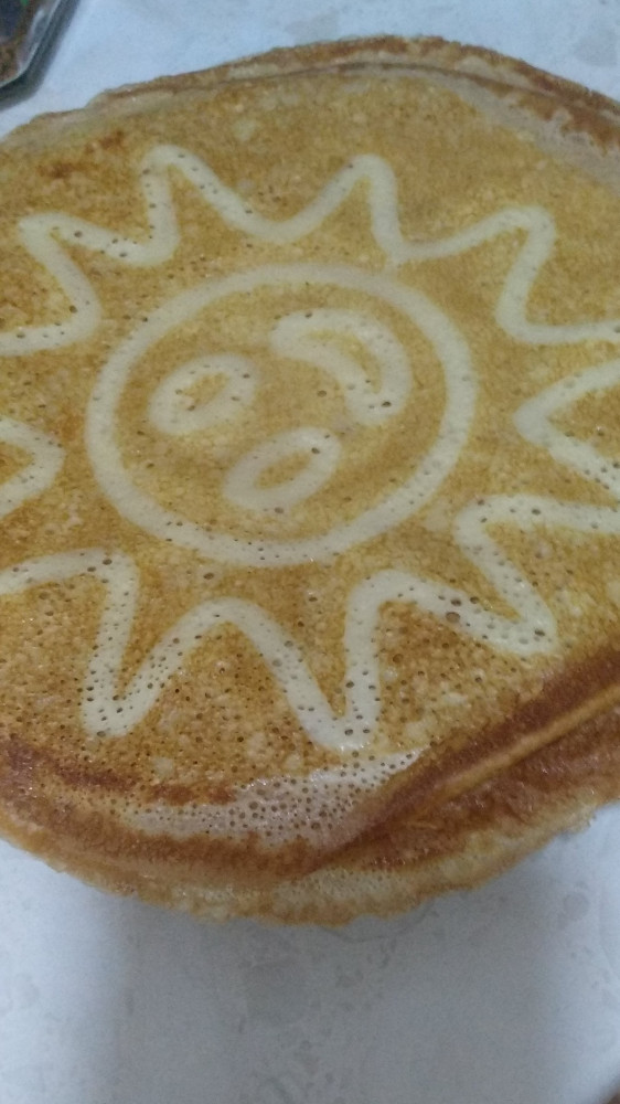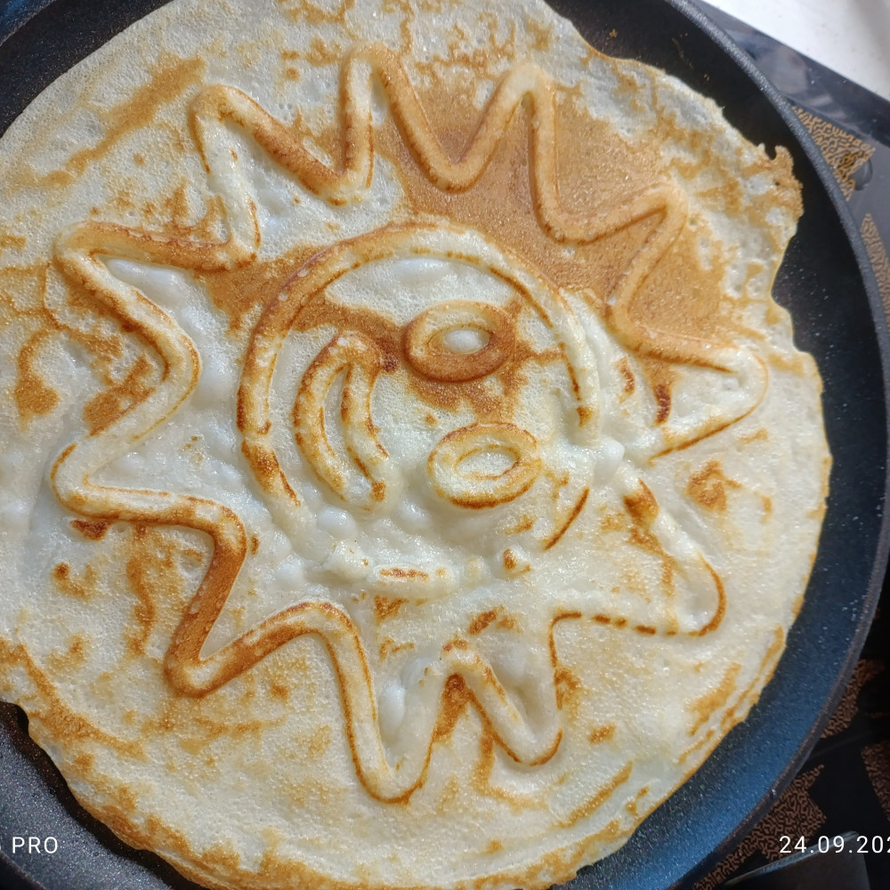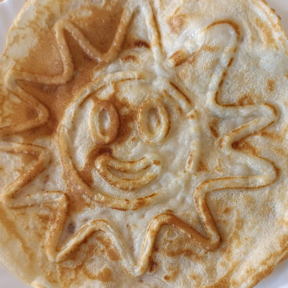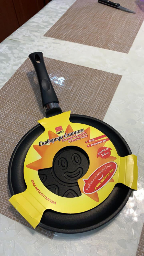 Сковородка отличная, блинчики не прилипают, а трафарет в виде солнышка добавляет настроения!