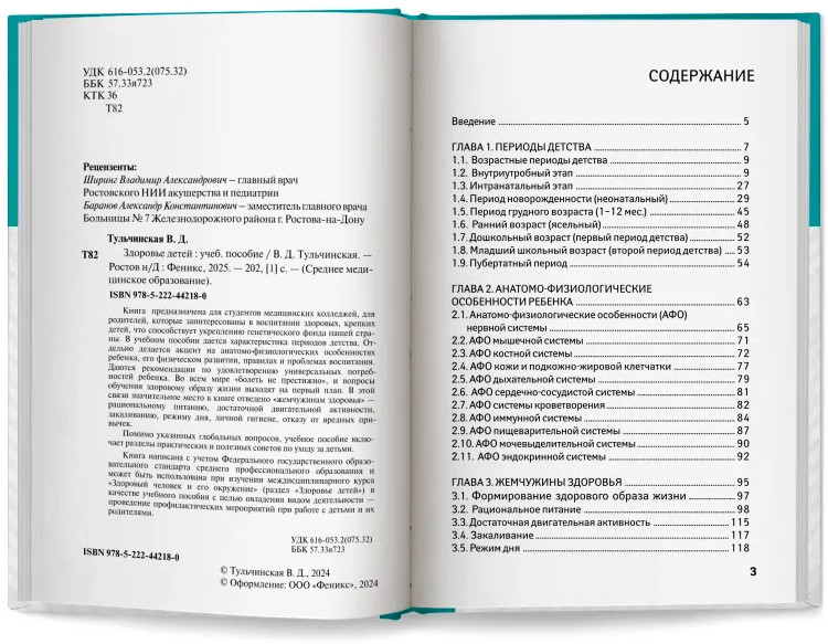 💳 Оплатить за товар можно при получении 🇰🇿 Есть бесплатная доставка по Казахстану 🎁 Копите бонусы с каждой покупки Серия: Среднее медицинское образование Книга предназначена для студентов медицинских колледжей, для родителей, которые заинтересованы в воспитании здоровых, крепких детей, что способствует укреплению генетического фонда нашей страны. В учебном пособии дается характеристика периодов детства. Отдельно делается акцент на анатомо-физиологических особенностях ребенка, его физическом развитии, правилах и проблемах воспитания. Даются рекомендации по удовлетворению универсальных потребностей ребенка. Во всем мире «болеть не престижно», и вопросы обучения здоровому образу жизни выходят на первый план. В этой связи значительное место в книге отведено «жемчужинам здоровья» — рациональному питанию, достаточной двигательной активности, закаливанию, режиму дня, личной гигиене, отказу от вредных привычек. Помимо указанных глобальных вопросов, учебное пособие включает разделы практических и полезных советов по уходу за детьми. Книга написана с учетом Федерального государственного образовательного стандарта среднего профессионального образования третьего поколения и может быть использована при изучении междисциплинарного курса «Здоровый человек и его окружение» (раздел «Здоровье детей») в качестве учебного пособия с целью овладения видом деятельности — проведение профилактических мероприятий при работе с детьми и их родителями. |