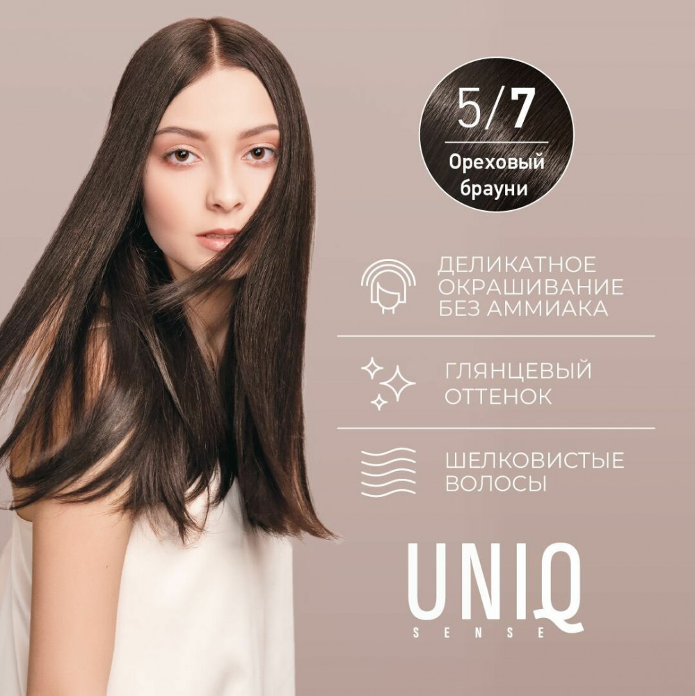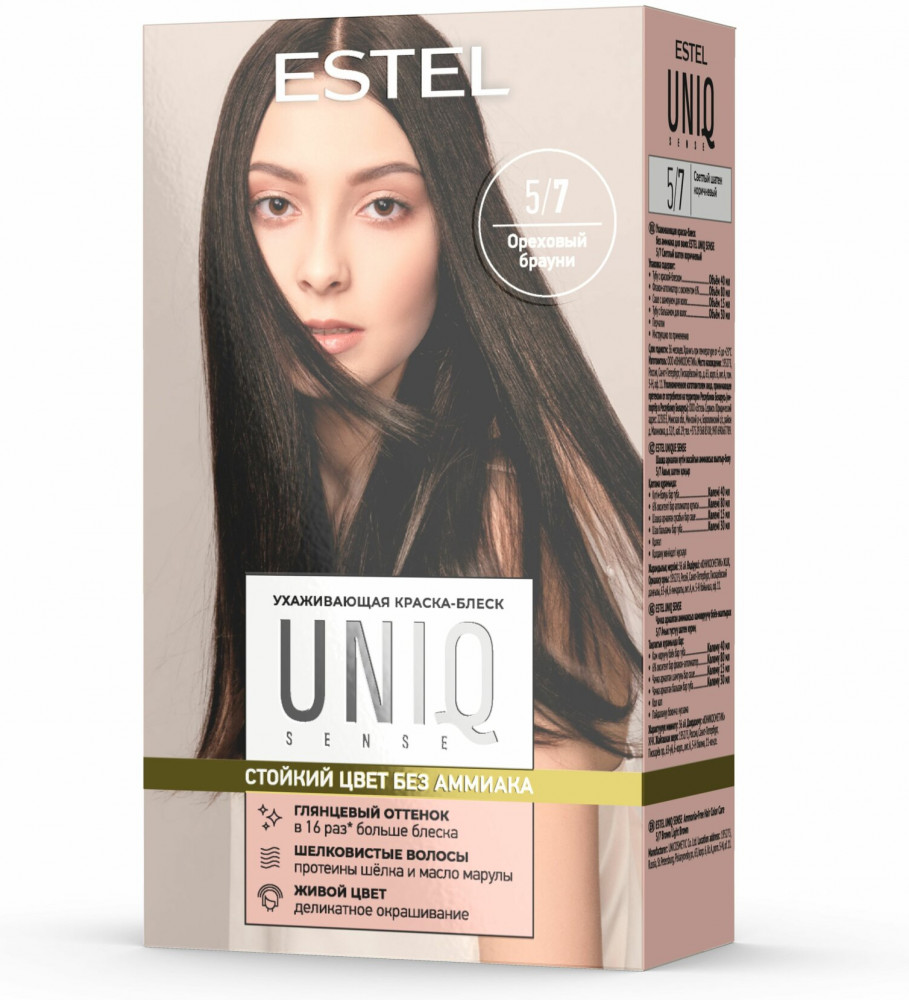 Краска-блеск для волос без аммиака, оттенок 5/7 Светлый шатен коричневый, ореховый брауни | Uniq sense | Estel