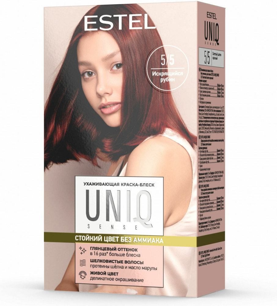 Краска Эстель дарит деликатное окрашивание без аммиака, глянцевый оттенок и щелковистые волосы. Краска для волос профессиональная наполняет сиянием волосы по всей длине и выводит яркость цвета на новый уровень. Стойкий мерцающий оттенок и чувственная шелковистость волос — Uniq Sense знает, что значит Сиять.