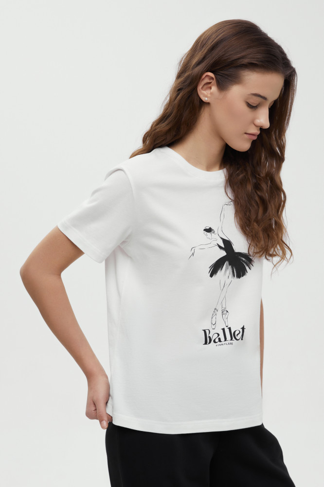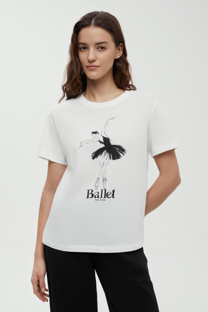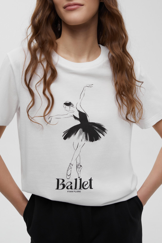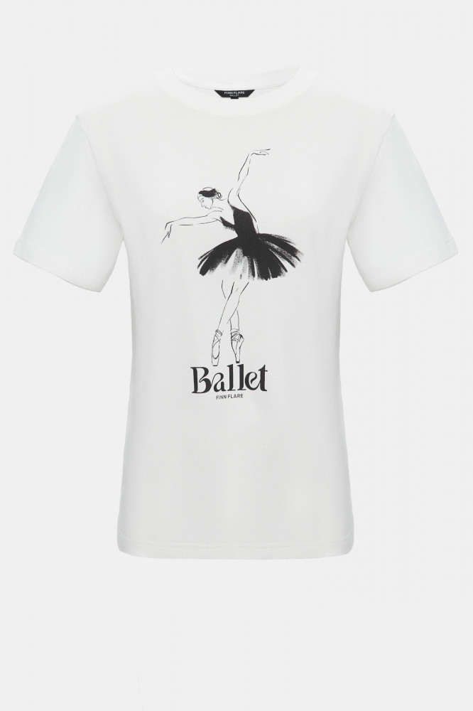 Finn Flare Футболка женская укороченная с принтом из капсулы Балет