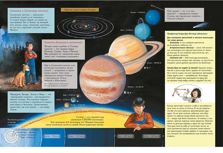 Мулле Мек рассказывает о космосе. Планеты, звёзды, галактики, чёрные дыры и тайны ВселеннойВ данный момент этот товар отсутствует в продаже. Возможно, у нас найдется аналогичный или похожий товар здесь. Серия: Мулле Мек - умелый человек Поздними осенними вечерами Мулле Мек и его собака Буффа любят сидеть на веранде, смотреть на небо и размышлять обо всём, что есть в космосе. А там есть и звёзды, и планеты, есть кометы, галактики и даже чёрные дыры! У Буффы, конечно, много вопросов. С чего всё началось? Как появилась Вселенная? Что такое Солнечная система? Откуда берутся кометы и метеориты? Мулле Мек по порядку ей всё объясняет, а профессор астрономии Клара фон Оптикус дополняет его слова интересными научными фактами. |
