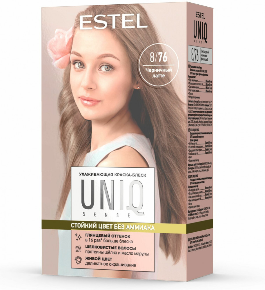 Краска-блеск для волос без аммиака, оттенок 8/76 Светло-русый коричнево-фиолетовый, черничный латте | Uniq sense | Estel