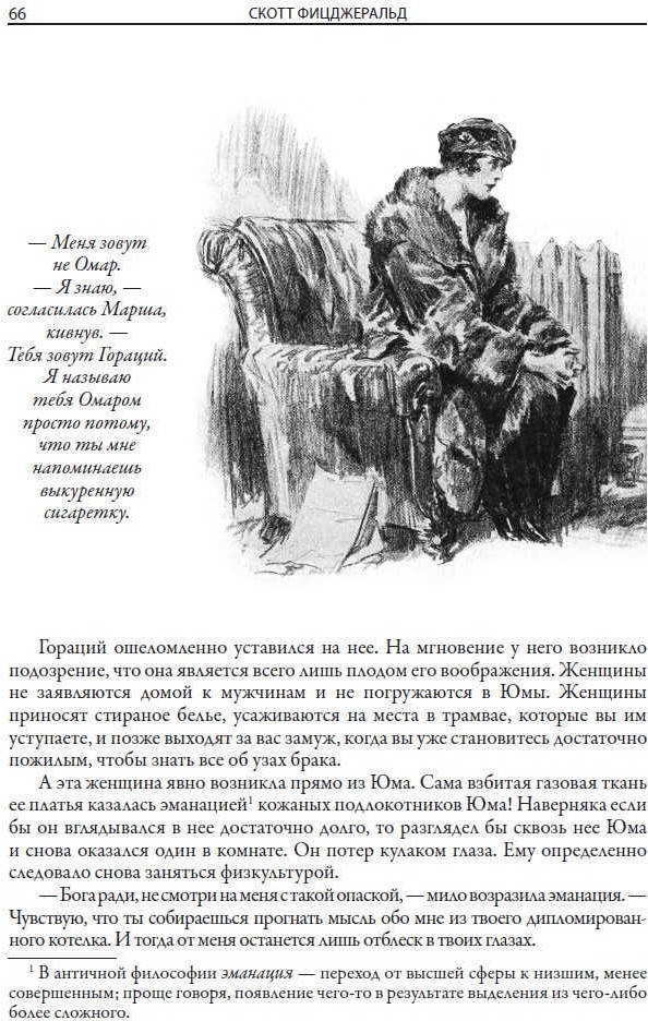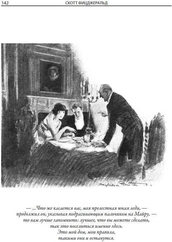 Прототипом многих юных героинь писателя стала красавица Зельда. Она была дочерью судьи и считалась одной из наиболее завидных невест Алабамы. Семья девушки была против ее брака с ирландцем, неспособным обеспечить своей будущей супруге безбедное существование. Влюбленный Фицджеральд решил, что его единственным козырем может стать триумф на литературном поприще. Он перебрался в Нью-Йорк, устроился в рекламное агентство и начал писать рассказы. Поначалу дела шли плохо — рукописи возвращали. Первый успех случился лишь в 1920 г. после публикации романа «По эту сторону рая». Произведения Фрэнсиса начали печатать, и он женился на своей Зельде. В каком-то смысле Фицджеральд стал одним из героев своих романов. Он приобрел особняк на Манхэттене и стал регулярно появляться с супругой на всех знаковых вечеринках «Большого яблока». Хотя, разумеется, бездельником-бонвиваном он не был — вести такой образ жизни ему позволял лишь упорный писательский труд. Эта жизнь, вроде бы внешне такая привлекательная, имела и свою оборотную сторону. Супруги часто ссорились, ревнивая Зельда закатывала мужу скандалы, а он заливал их алкоголем. Вырваться из нью-йоркской бесконечной круговерти помогла поездка в Европу. Именно там, в Париже, Фицджеральд дописал «Великого Гэтсби» — роман, который стал шедевром американской литературы «эпохи джаза». Атмосферу того времени хорошо передают рисунки в данной книге. Они выполнены целой плеядой американских художников, которые иллюстрировали рассказы Фицджеральда в 20-х годах прошлого века. |