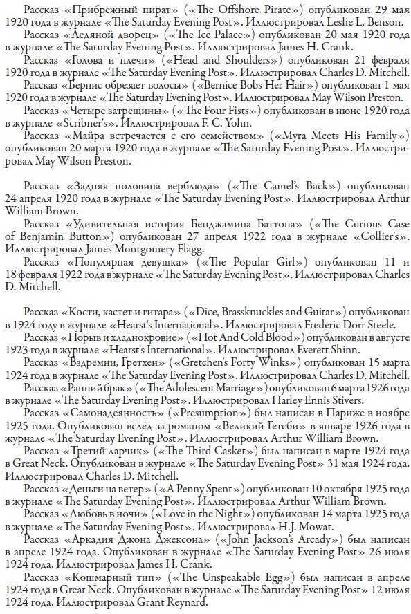 Период своей истории с окончания Первой мировой войны до начала Великой депрессии американцы называют Эпохой джаза. Этот термин ввел в обиход Фрэнсис Скотт Фицджеральд. В его рассказах, появлявшихся в американских журналах в первой четверти XX века, атмосфера того времени передана блестяще. Фицджеральд в основном писал об американцах, которые считали себя «сливками общества». Он и сам втайне стремился к ним принадлежать. Фрэнсис появился на свет в 1896 г. в семье ирландских иммигрантов. Родственники оплатили ему учебу в Принстонском университете. В его стенах юноша начал мечтать о литературной славе, ведь задатки литератора у него, безусловно, были. Однако Фрэнсис так и не стал своим в среде «золотой молодежи». Мешало ирландское происхождение и невысокое финансовое положение. Позже Фицджеральд вспоминал, что именно в это время в нем зародилась «враждебность к классу бездельников». Часто молодые люди в его рассказах такими богатыми бездельниками и являются.