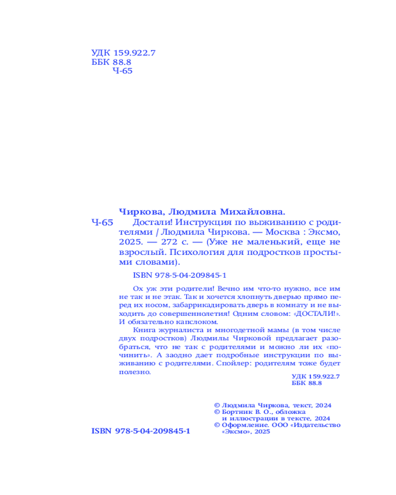 💳 Оплатить за товар можно при получении 🇰🇿 Есть бесплатная доставка по Казахстану от 1 дня 🎁 Копите бонусы с каждой покупки Серия: Уже не ребенок, еще не взрослый. Психология для подростков простыми словами Устали от постоянных родительских нотаций и запретов? Чувствуете, будто ваша жизнь превратилась в сплошной кошмар из-за бесконечных требований? Пора покончить с этим. |