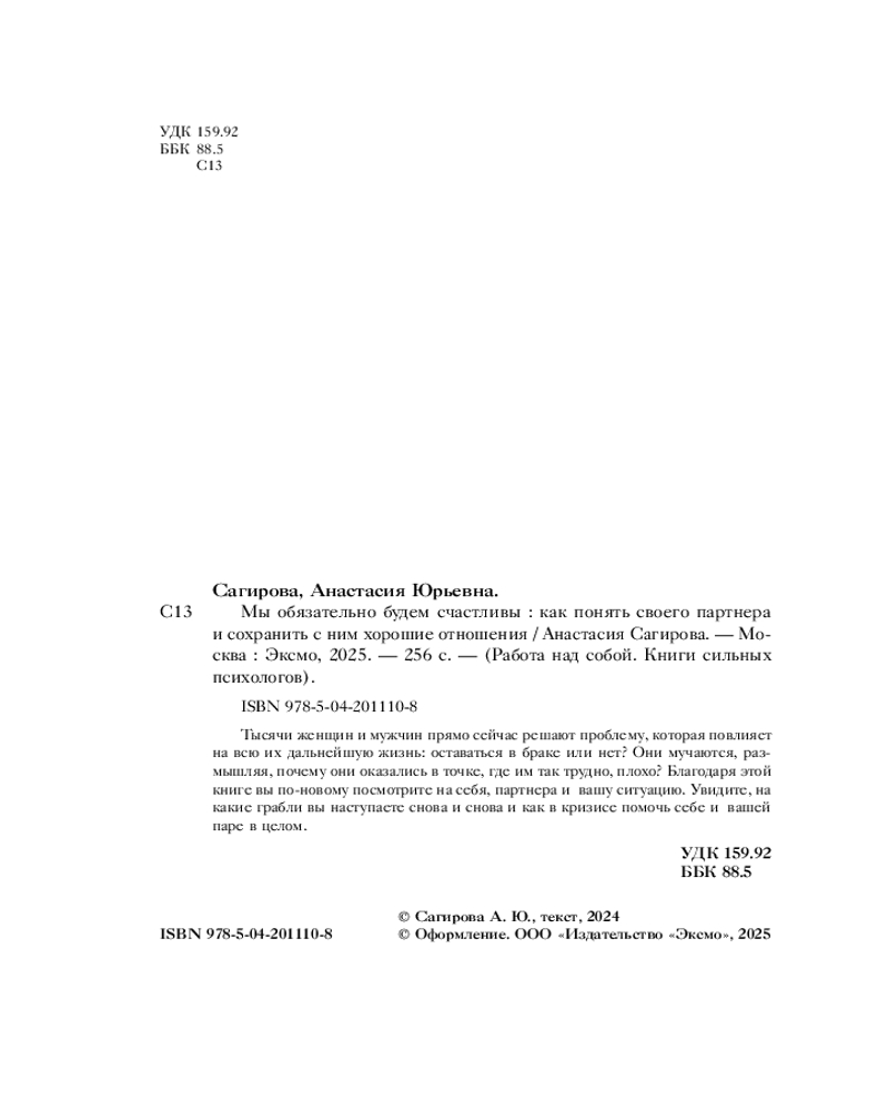 💳 Оплатить за товар можно при получении 🇰🇿 Есть бесплатная доставка по Казахстану от 1 дня 🎁 Копите бонусы с каждой покупки Серия: Работа над собой. Книги сильных психологов Кризис в отношениях можно преодолеть. Главное — знать, как именно, и тогда не придется жить годами в затухающем браке. |