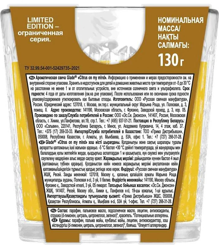 SC Johnson Ароматизированная свеча «Citrus On my Mind»