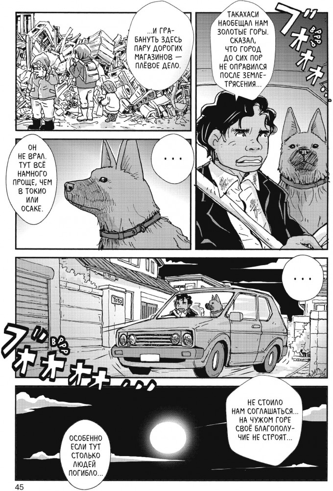 💳 Оплатить за товар можно при получении 🇰🇿 Есть бесплатная доставка по Казахстану от 1 дня 🎁 Копите бонусы с каждой покупки Серия: Комильфо. Манга. Всё в одном Пёс Тамон, потерявший во время страшного землетрясения хозяйку, отправляется в многолетнее путешествие через всю Японию в поисках мальчика, который когда-то играл с ним в парке. На пути ему повстречаются самые разные люди: парень, ради своей болеющей матери связавшийся с преступниками, грабитель-иностранец, обманутая возлюбленным проститутка, умирающий от рака старый охотник и, наконец, тот самый мальчик, который после землетрясения перестал говорить и улыбаться... |