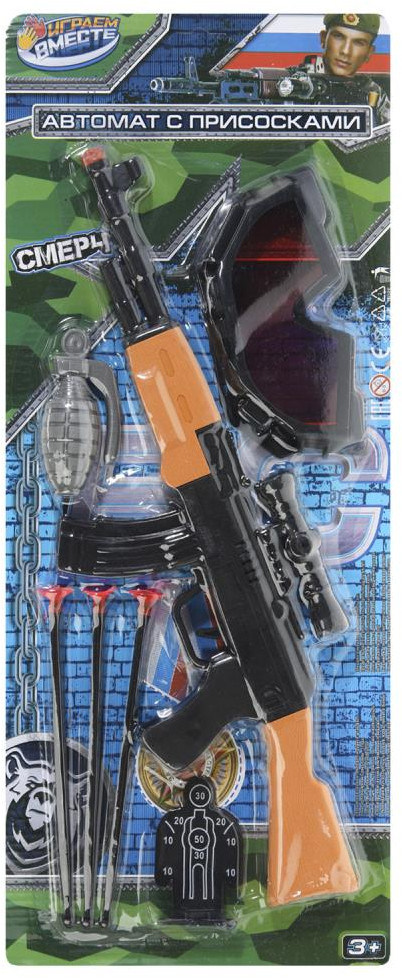 Играем вместе Автомат с присосками игрушечныйВ данный момент этот товар отсутствует в продаже. Возможно, у нас найдется аналогичный или похожий товар здесь. Серия: Смерч С этим игровым оружием ваш ребёнок будет придумывать увлекательные спецзадания, защищать мир и стоять на страже порядка. С таким автоматом маленький герой станет самым метким стрелком. Набор подойдёт для активных игр на воздухе и в помещении. |