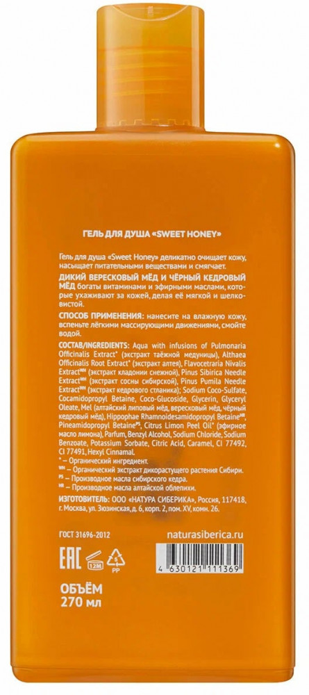 Natura Siberica Гель для душа питательный «Sweet Honey»