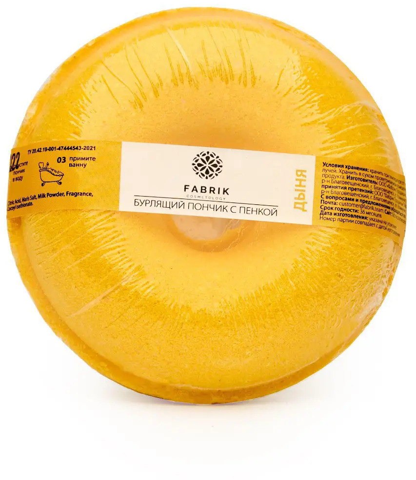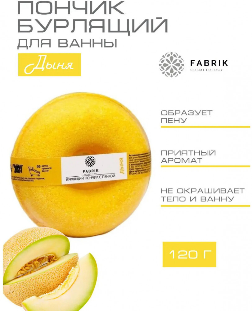 Fabrik Cosmetology Пончик для ванны бурлящий с пенкой «Дыня»