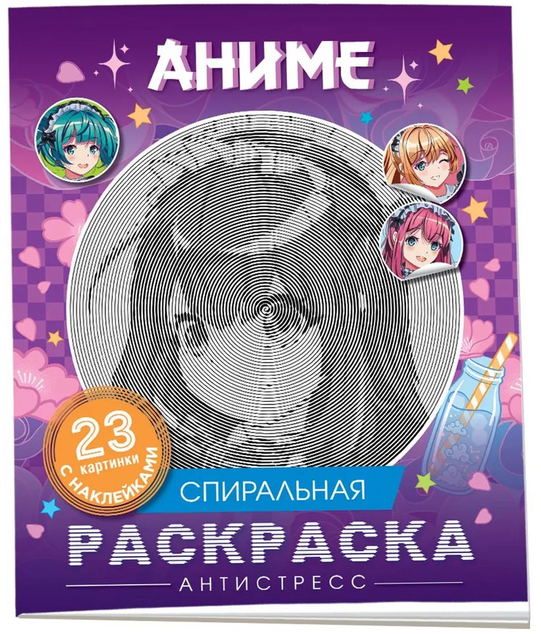 Аниме. Спиральная раскраска-антистресс с наклейками-30% +18