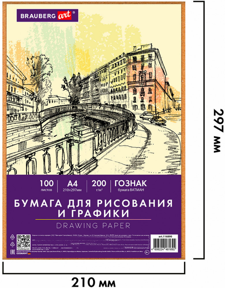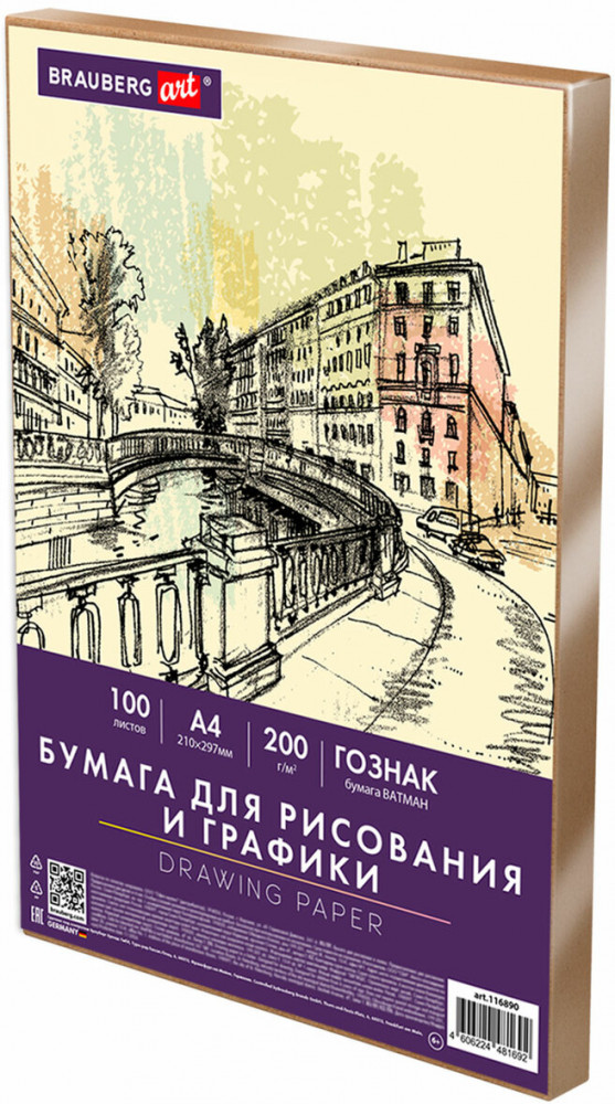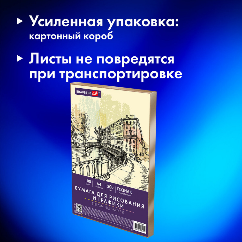 Бумага для рисования и графики Brauberg содержит набор листов ватмана производства Гознак. Бумага упакована в короб из микро гофрокартона, что позволяет сохранить товар в привлекательном виде при транспортировке, а также удобно хранить в бытовых условиях