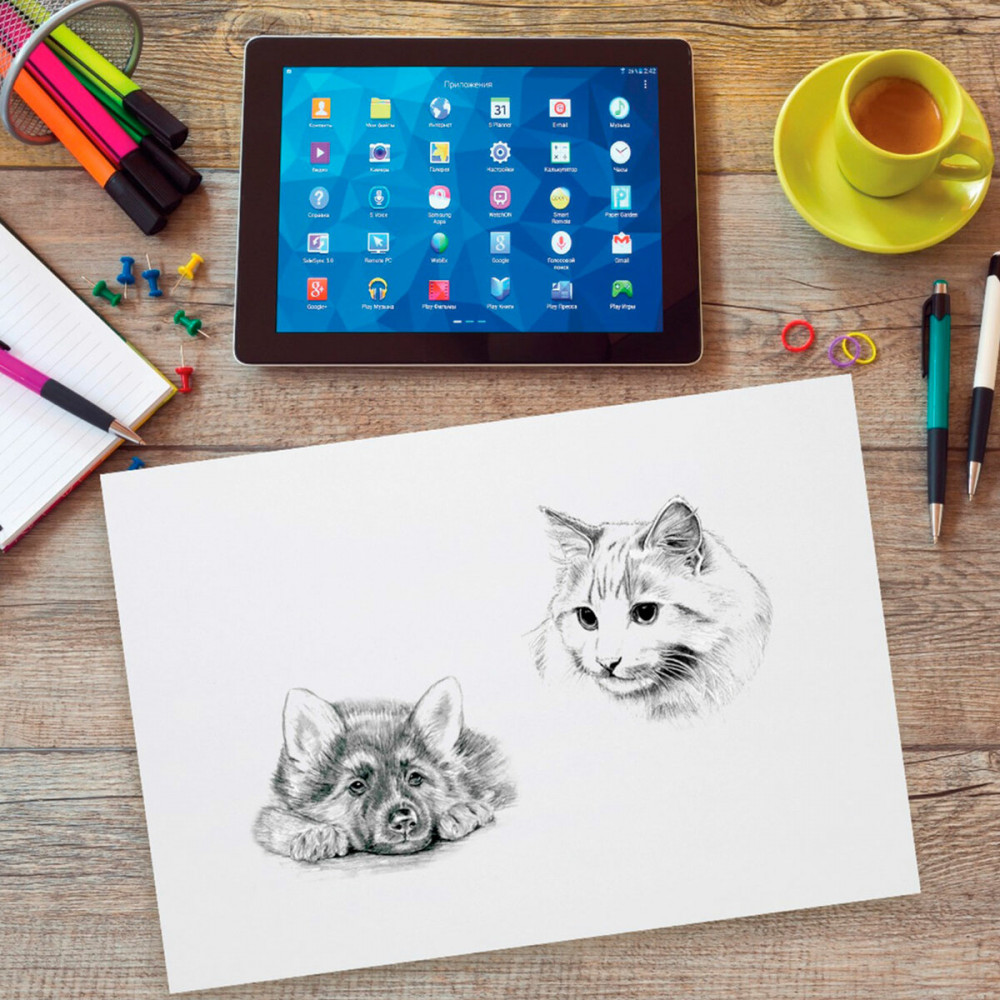 Внутренний блок содержит 100 листов производства ГОЗНАК КБФ плотностью 200 г/м². Ватман формата А4 (210×297 мм) устойчив к истиранию и прекрасно подойдет как для рисования именно в сухих техниках (карандаши, фломастеры, графитные мелки, линеры), так и для чертежных работ. Подойдет для маркеров, но нужно будет подкладывать что-то под лист, на котором рисуете. Бумага для рисования и графики незаменима для студентов, школьников а так же для профессионалов и любителей.