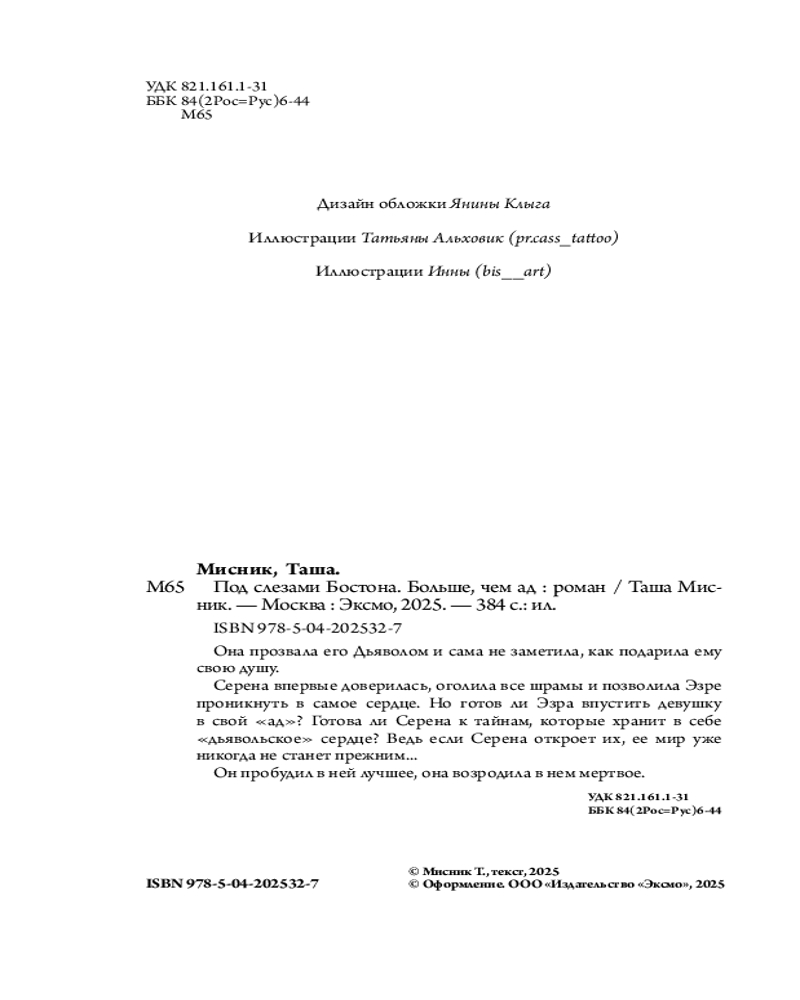 💳 Оплатить за товар можно при получении 🇰🇿 Есть бесплатная доставка по Казахстану от 1 дня 🎁 Копите бонусы с каждой покупки Серия: Под слезами Бостона. Бестселлеры Таши Мисник (покет с клапанами) Она прозвала его Дьяволом и сама не заметила, как подарила ему свою душу. Серена впервые доверилась, оголила все шрамы и позволила Эзре проникнуть в самое сердце. Но готов ли Эзра впустить девушку в свой «ад»? Готова ли Серена к тайнам, которые хранит в себе «дьявольское» сердце? Ведь если Серена откроет их, ее мир уже никогда не станет прежним... Он пробудил в ней лучшее, она возродила в нем мертвое. Многократный хит продаж ЛитРес. |