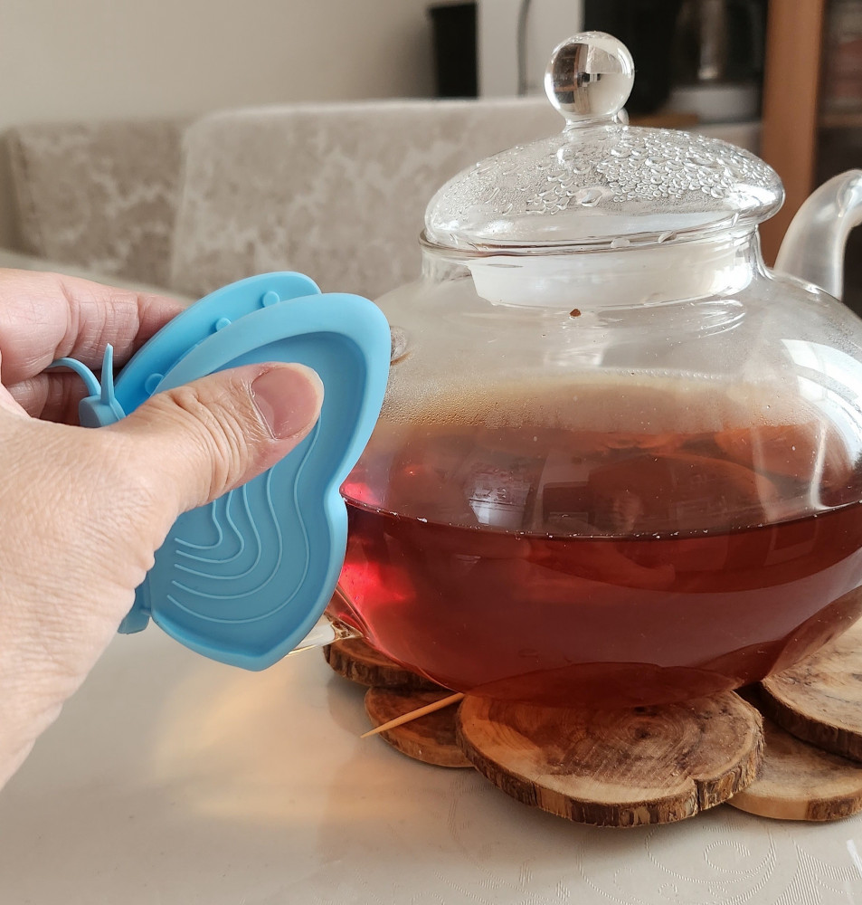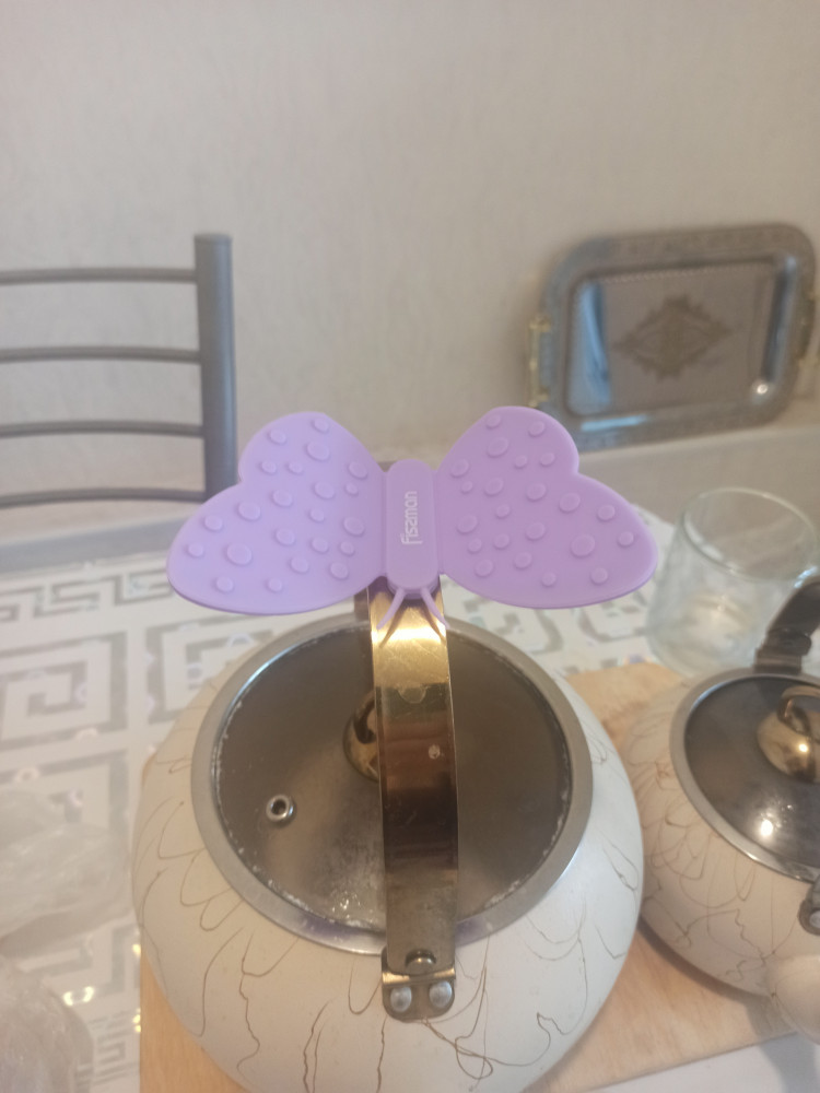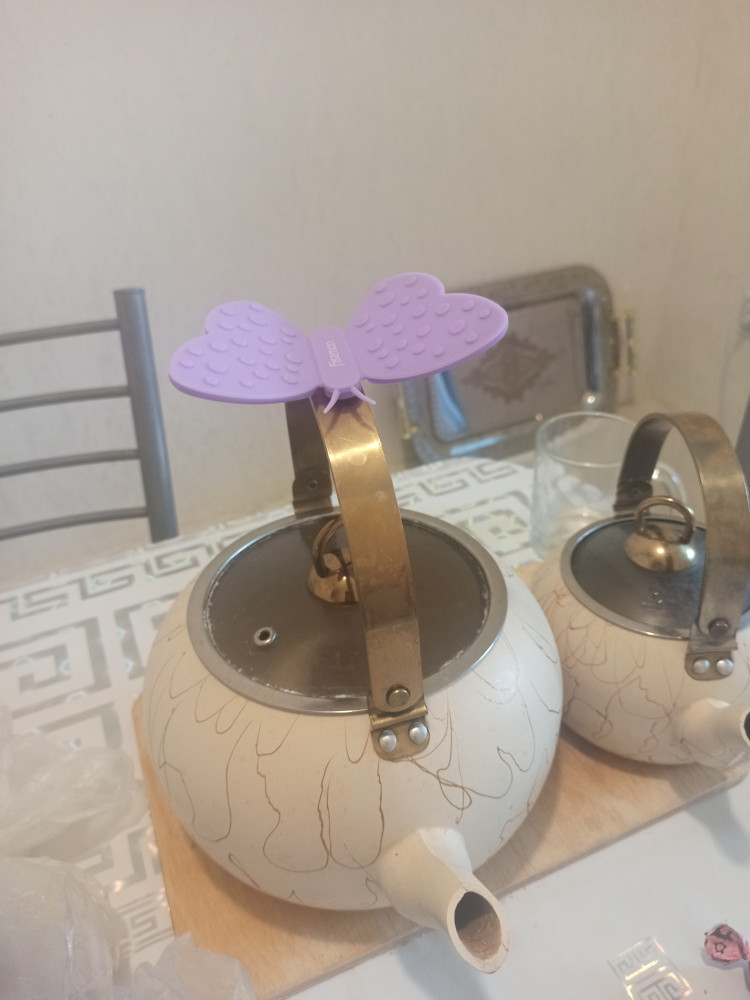 Очень удобная прихватка бабочка😍у меня ручки сами небольшие для меня идеально,использую для горячих крышек,чайника и как красиво сидит бабочка благодаря магнитику на ручке чайника
