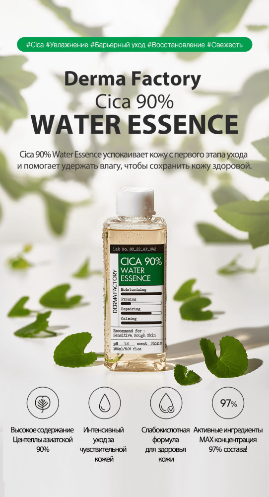 Derma Factory Тонер-эссенция успокаивающая с центеллой азиатской «Cica 90% water essence»