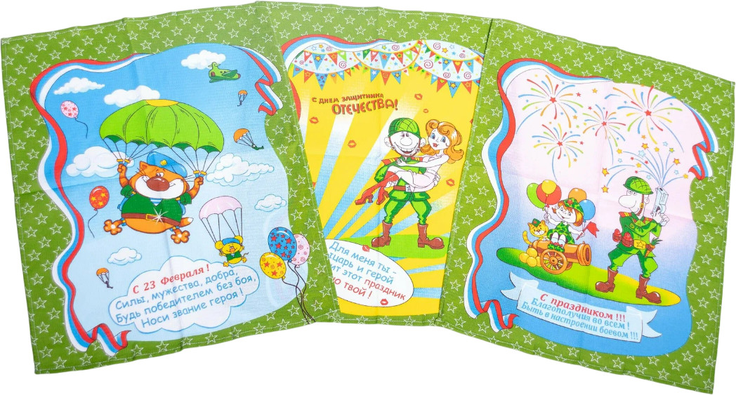 Alice Textile Набор полотенец кухонных «День защитника отечества»В данный момент этот товар отсутствует в продаже. Возможно, у нас найдется аналогичный или похожий товар здесь. Набор из трех полотенец размером 45×60 см — это практичное и стильное дополнение к любому дому. Изготовленные из 100% хлопка, они обладают высокой впитываемостью, быстро сохнут и легко стираются. Качественные материалы обеспечивают мягкость и комфорт при использовании. Яркий и красочный дизайн добавляет уюта и тепла в интерьер. Такой набор станет отличным подарком для родных и близких. |